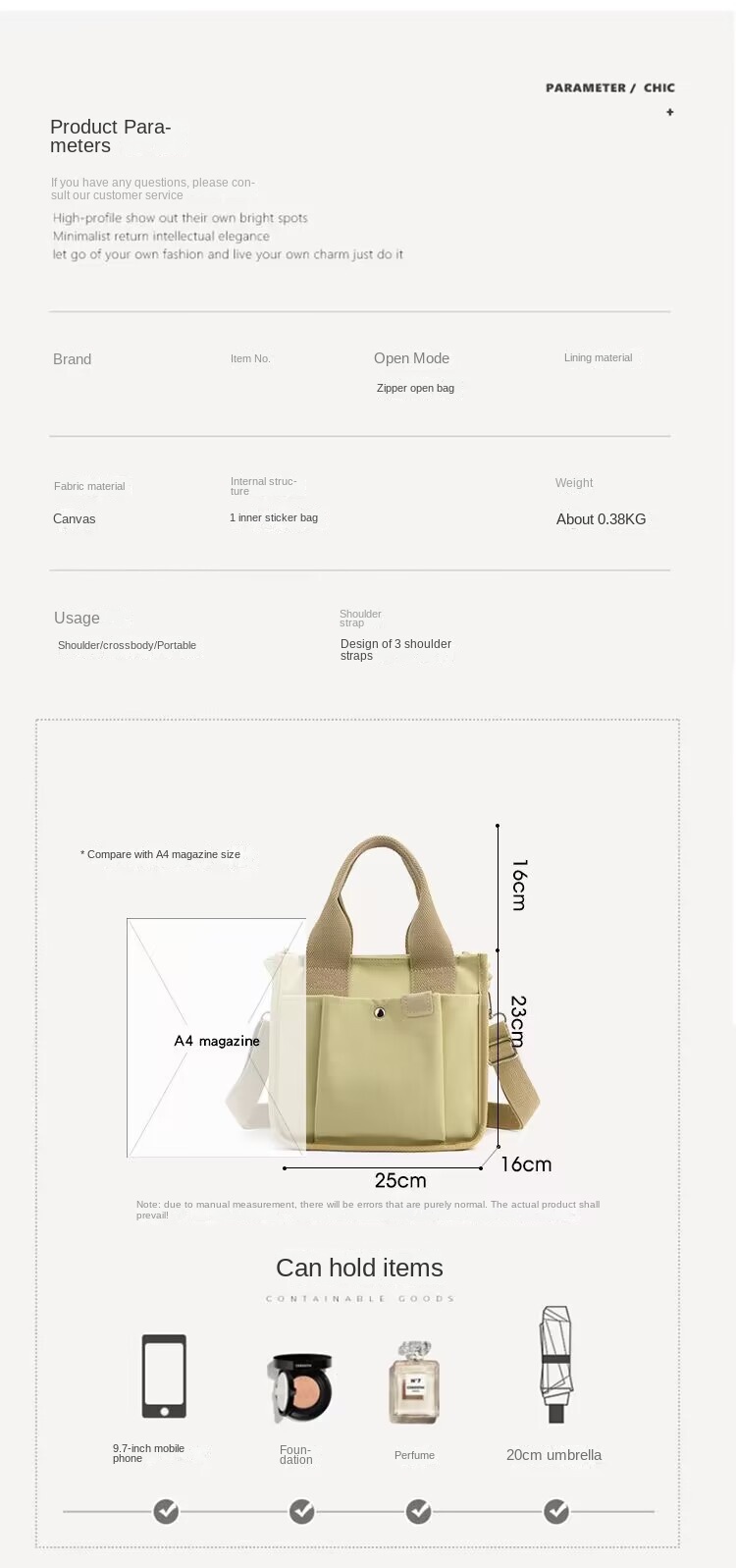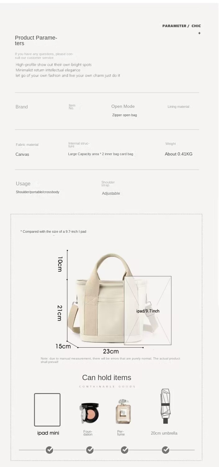 Canvas Bag for Women with Large Capacity, Lunch Box, Multiple Compartments