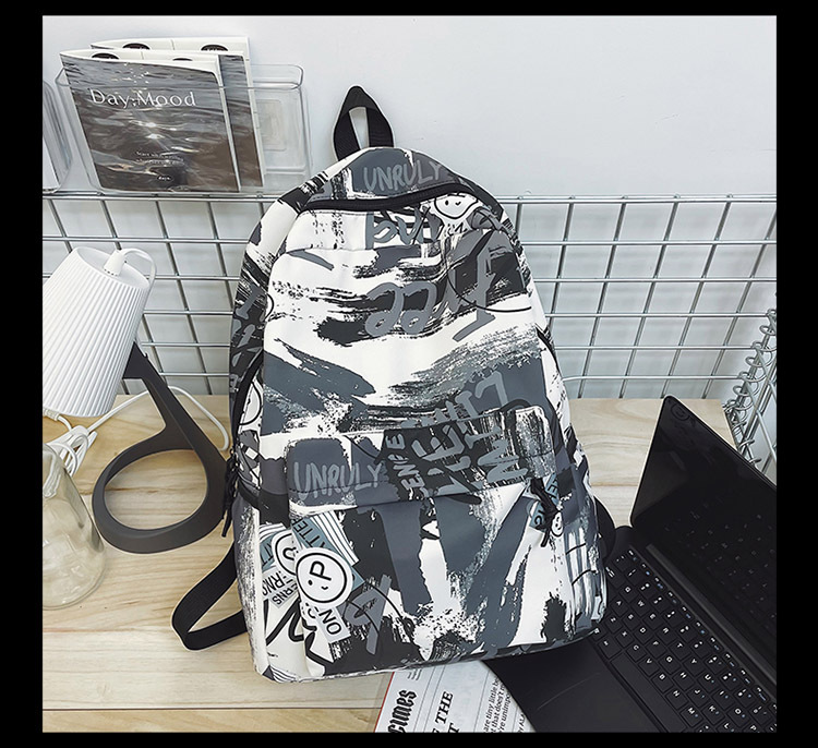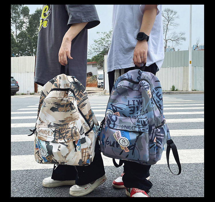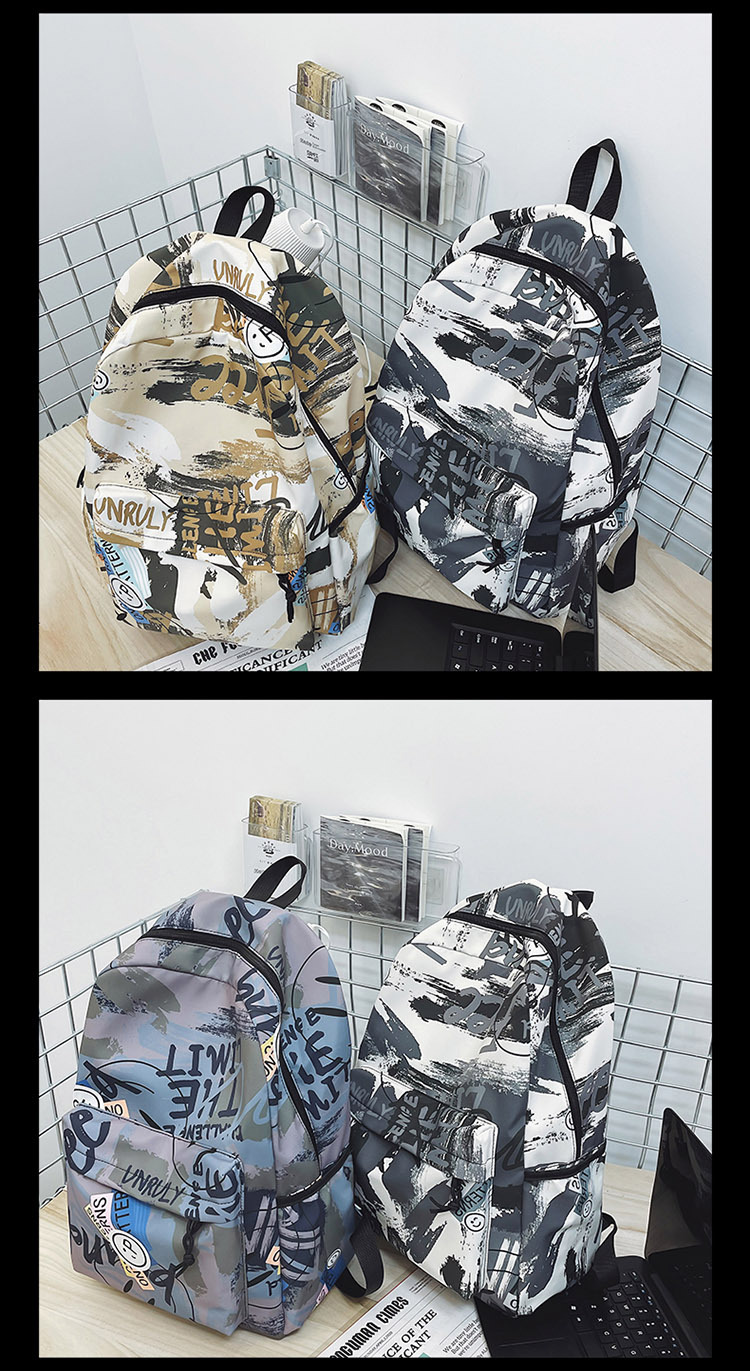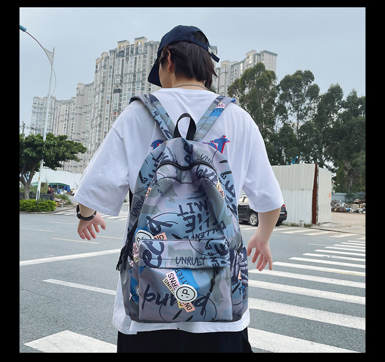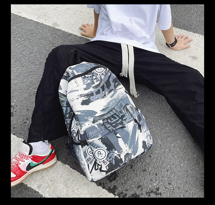 {"Style":"Street Fashion","Layered":"No","Pattern":"Graffiti","Bag Size":"Large","Bag Type":"Inner Bag","Hardness":"Soft","Material":"Oxford cloth","Bag Shape":"Horizontal Rectangular","Carrying Parts":"Soft Handle","Fabric Quality":"Polyester","Opening Method":"Zipper","Bag Trend Style":"Backpack","Fashion Element":"Other","Processing Method":"Soft Surface","Internal Structure":"Zipper Pocket"}