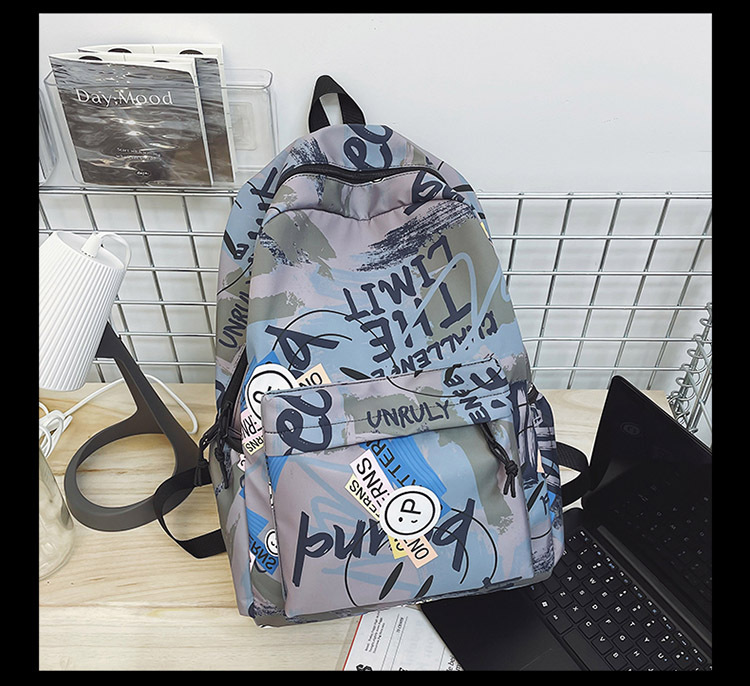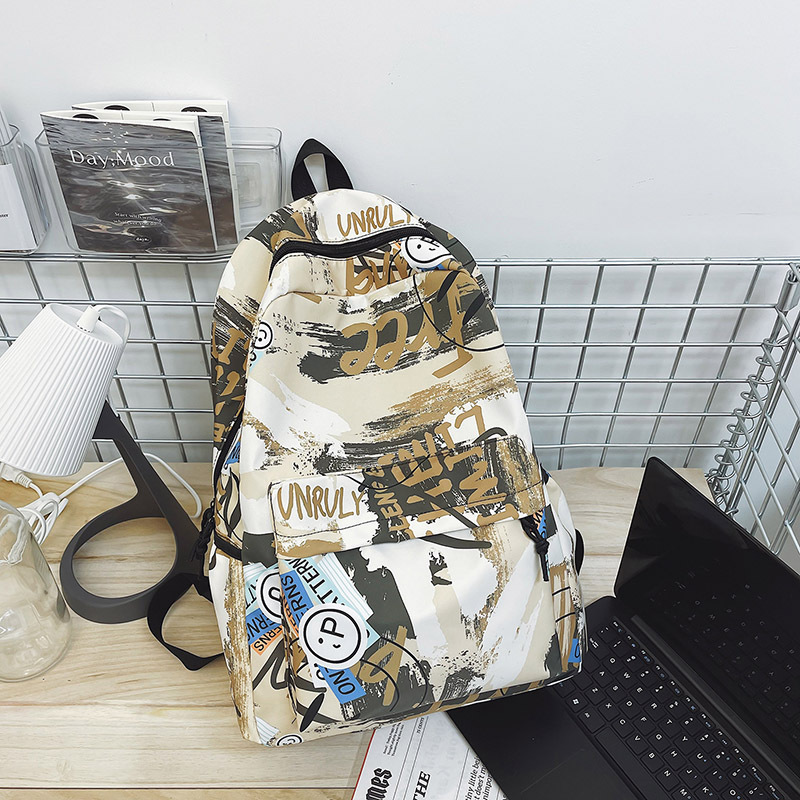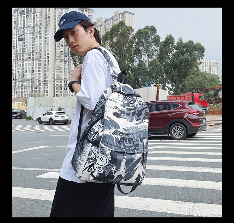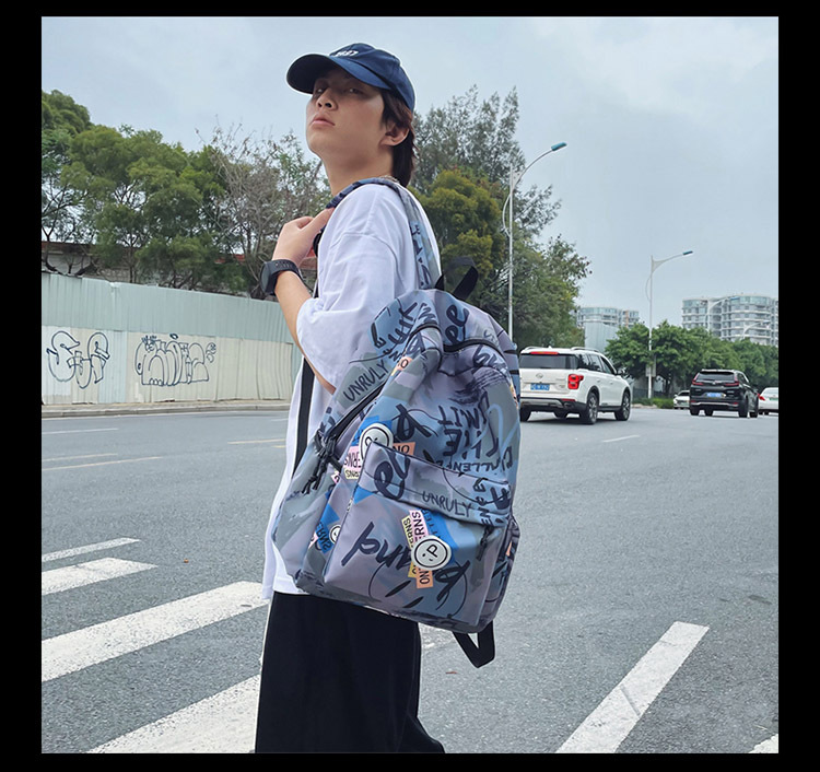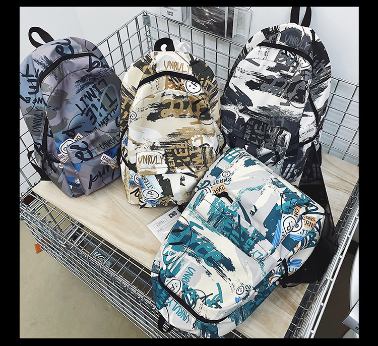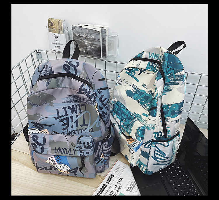 {"Style":"Street Fashion","Layered":"No","Pattern":"Graffiti","Bag Size":"Large","Bag Type":"Inner Bag","Hardness":"Soft","Material":"Oxford cloth","Bag Shape":"Horizontal Rectangular","Carrying Parts":"Soft Handle","Fabric Quality":"Polyester","Opening Method":"Zipper","Bag Trend Style":"Backpack","Fashion Element":"Other","Processing Method":"Soft Surface","Internal Structure":"Zipper Pocket"}