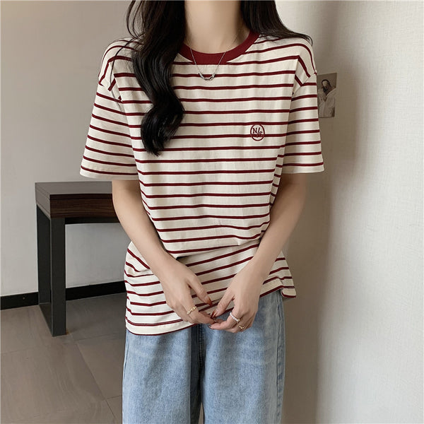 Camiseta de manga corta de algodón de algodón de algodón de mujer, transpirable y cómodo