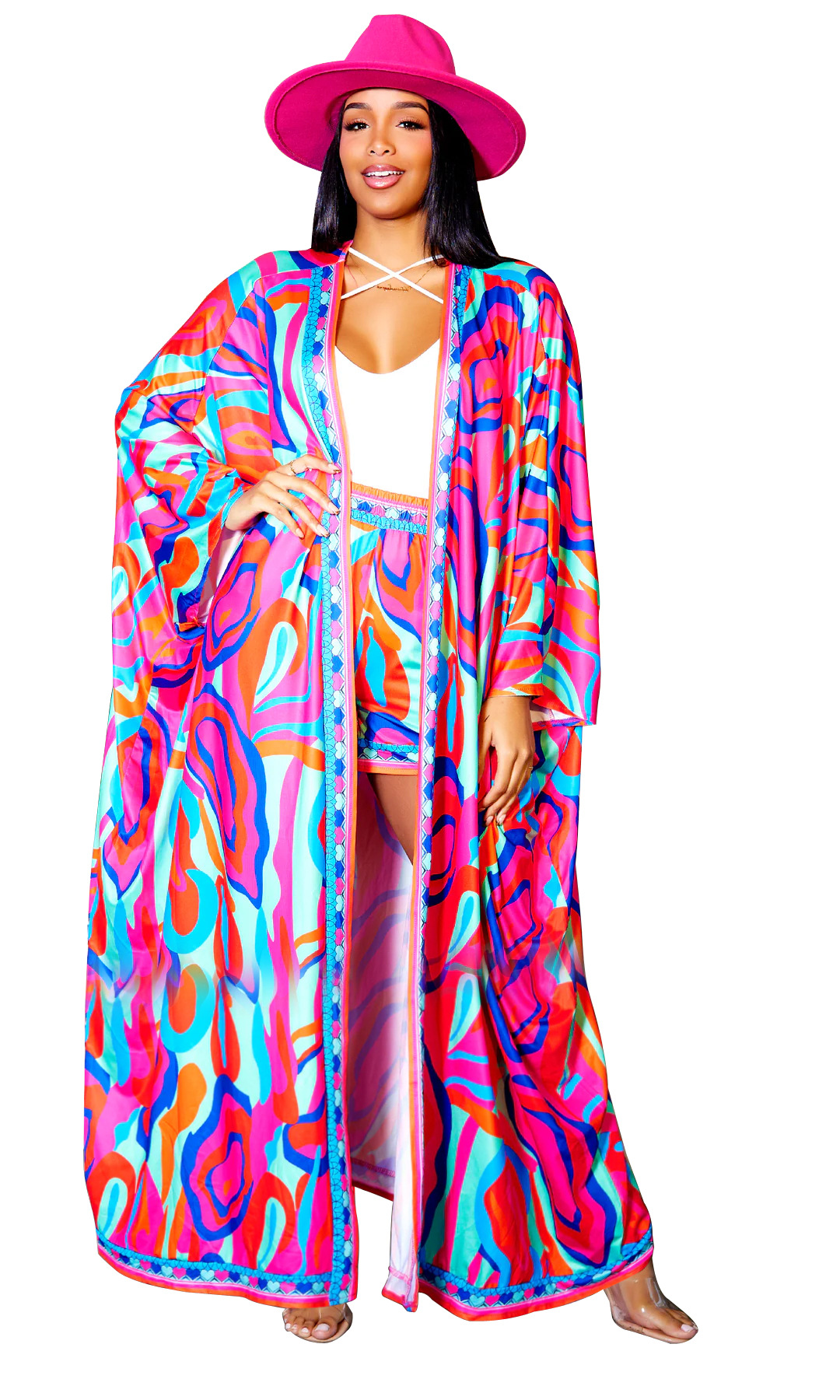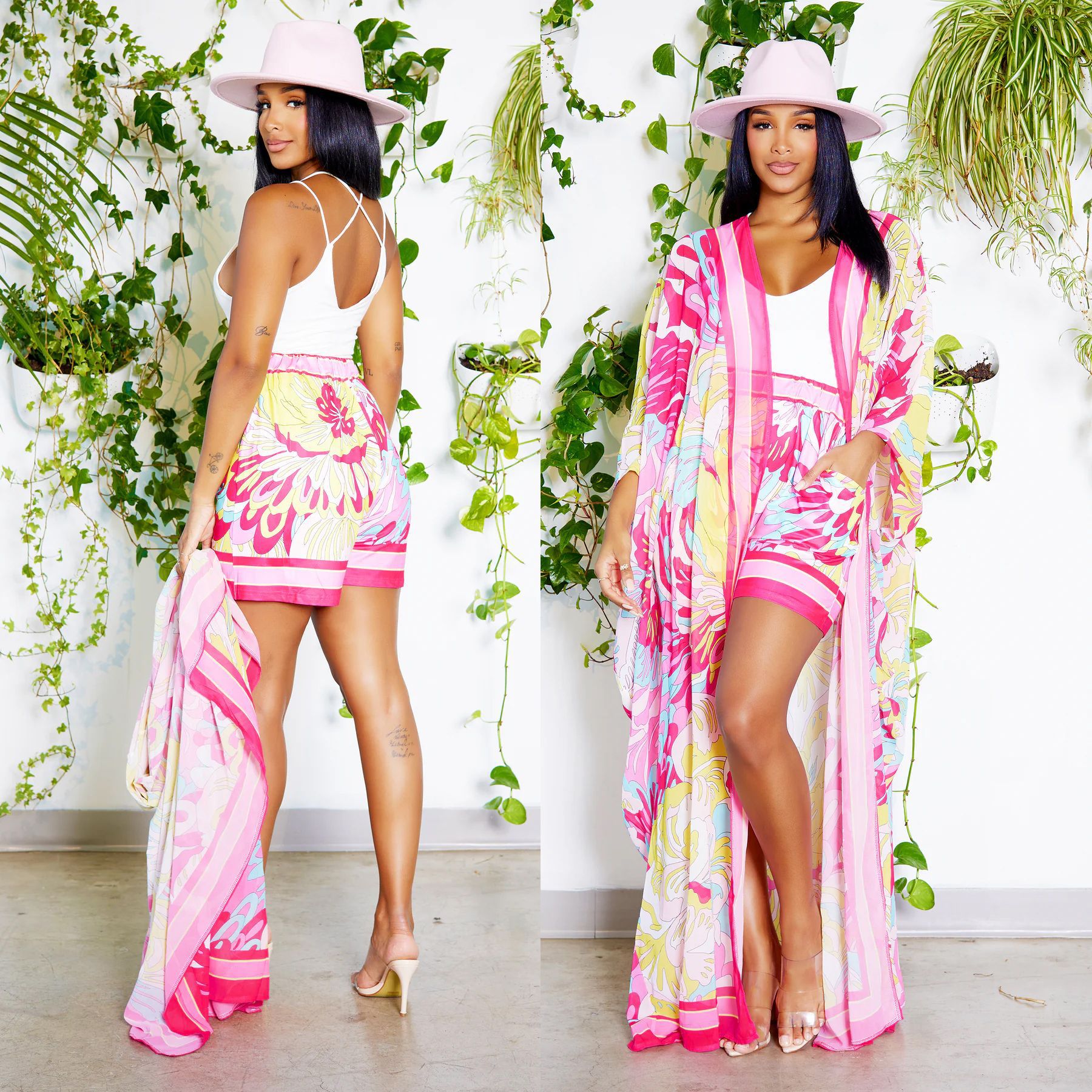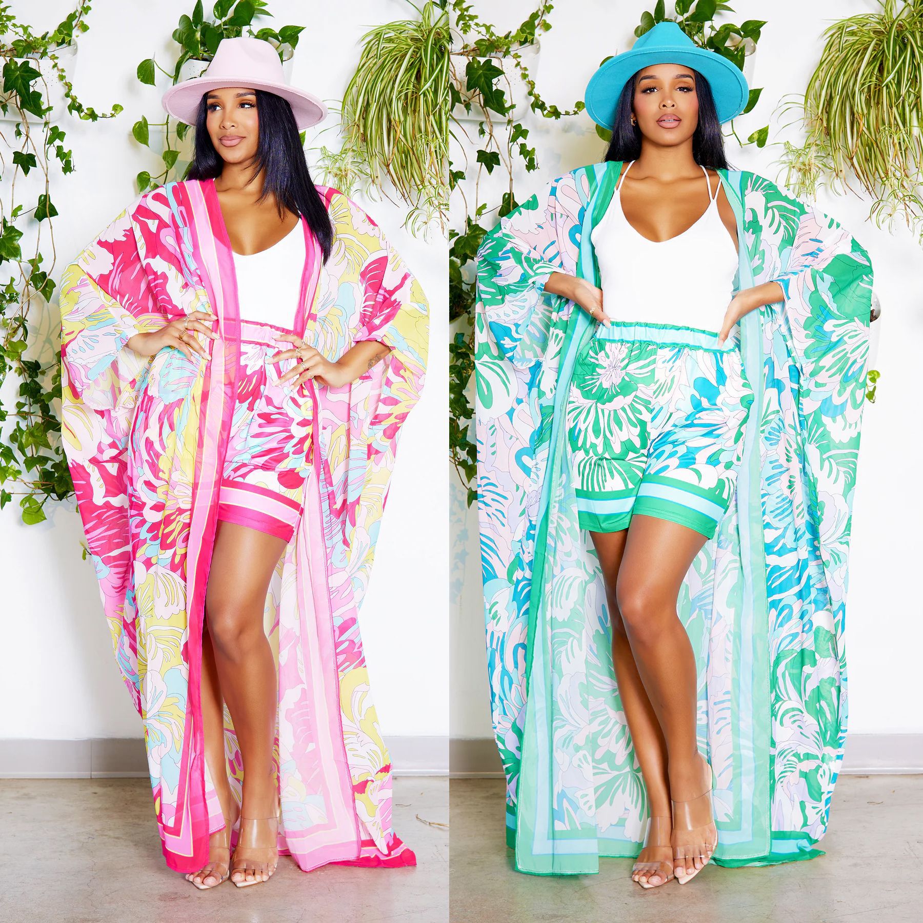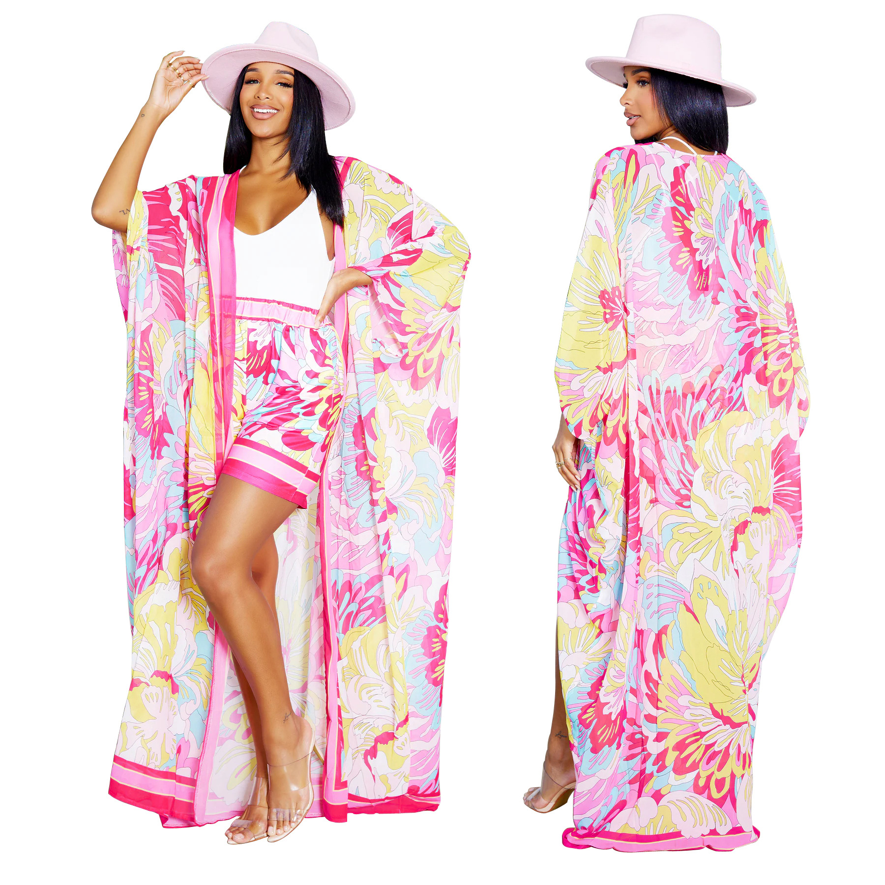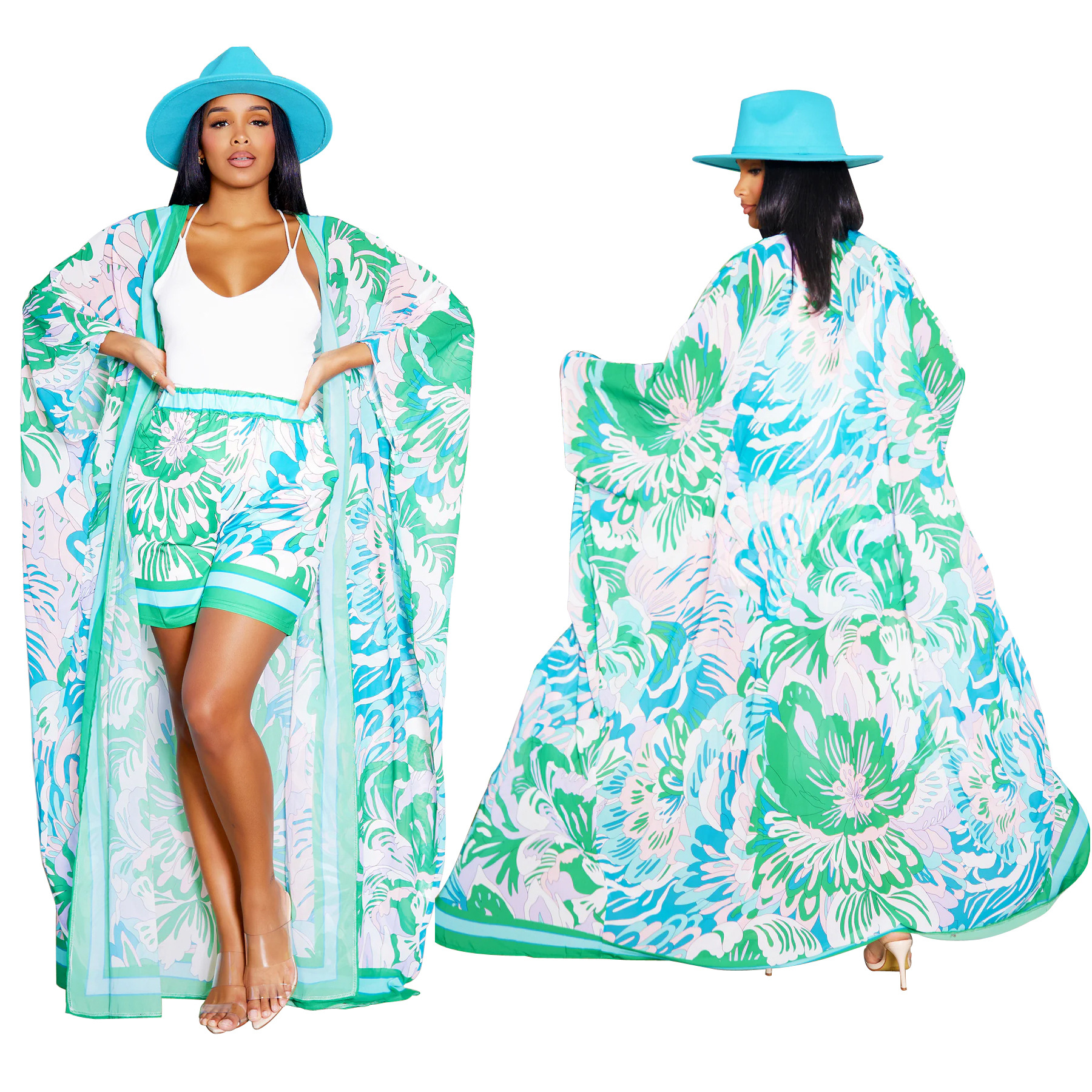 - ["Made of high quality snow gauze fabric for comfortable wearing","Features a floral printed pattern for a stylish look","Comes with a 3/4 length pants and a beach skirt","Designed with a mouthpiece element for a fashionable look","Available in sizes S to 4XL for a perfect fit"]