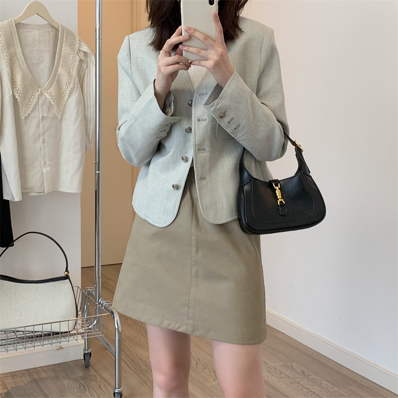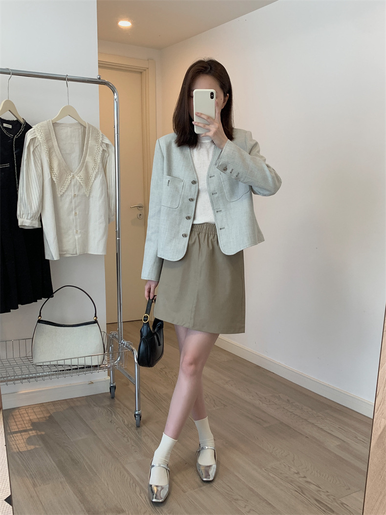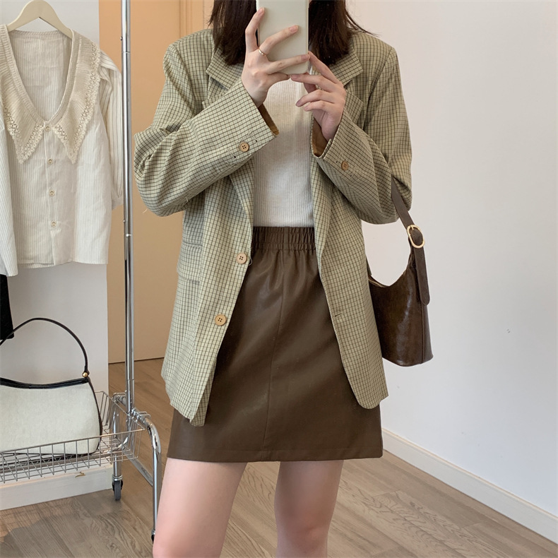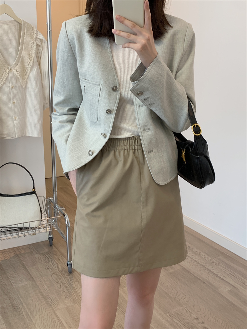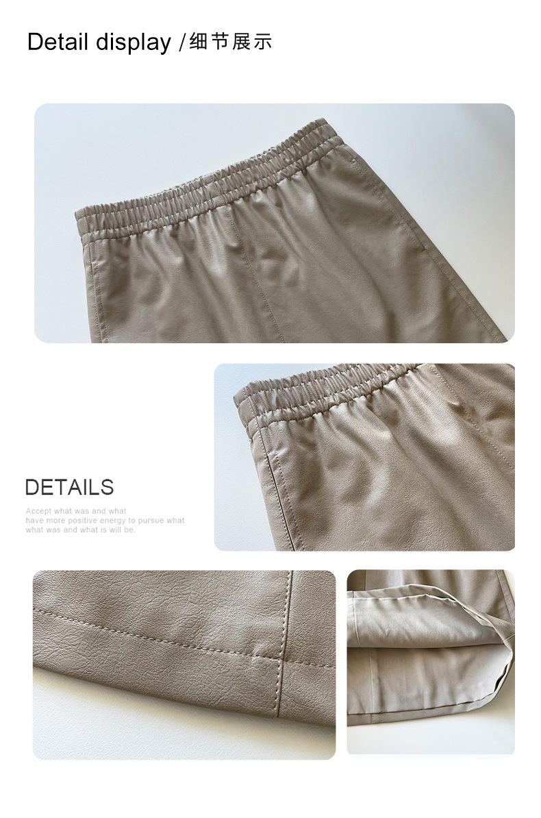 Women's Environmental Protection A-Line Leather Short Skirt Autumn and Winter New Khaki Color Temperament Fashionable High Waist Short Half Skirt