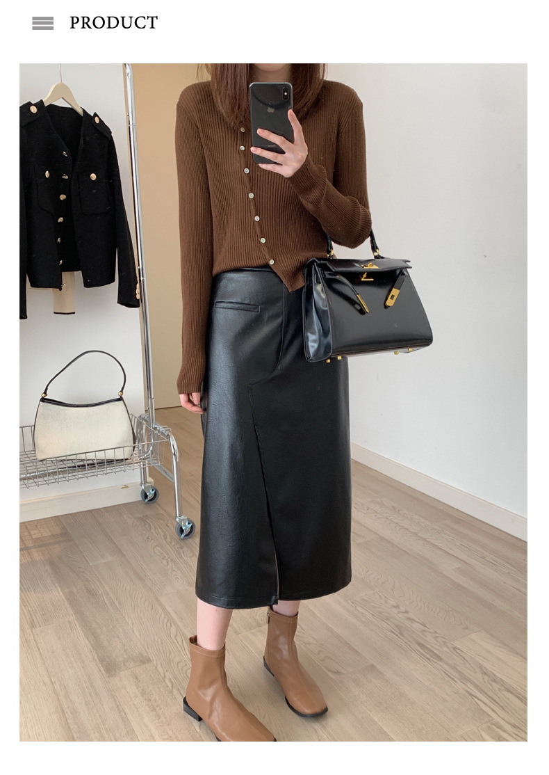 This Black PU Leather Skirt is perfect for autumn and winter. It is made of high-end design with a sense of high waist straight tube open fork environmental protection leather package butt half skirt medium-long skirt. It is fashionable and comfortable to wear. It is suitable for any occasion and will make you stand out in the crowd. It is a great choice for any fashionista.
