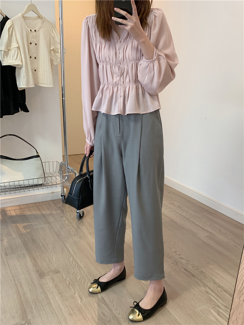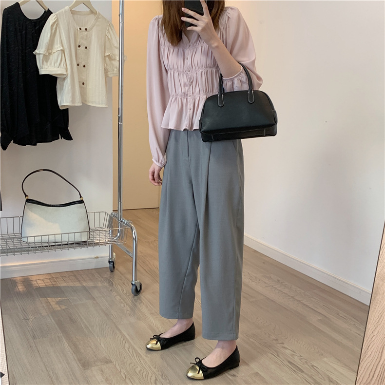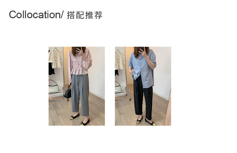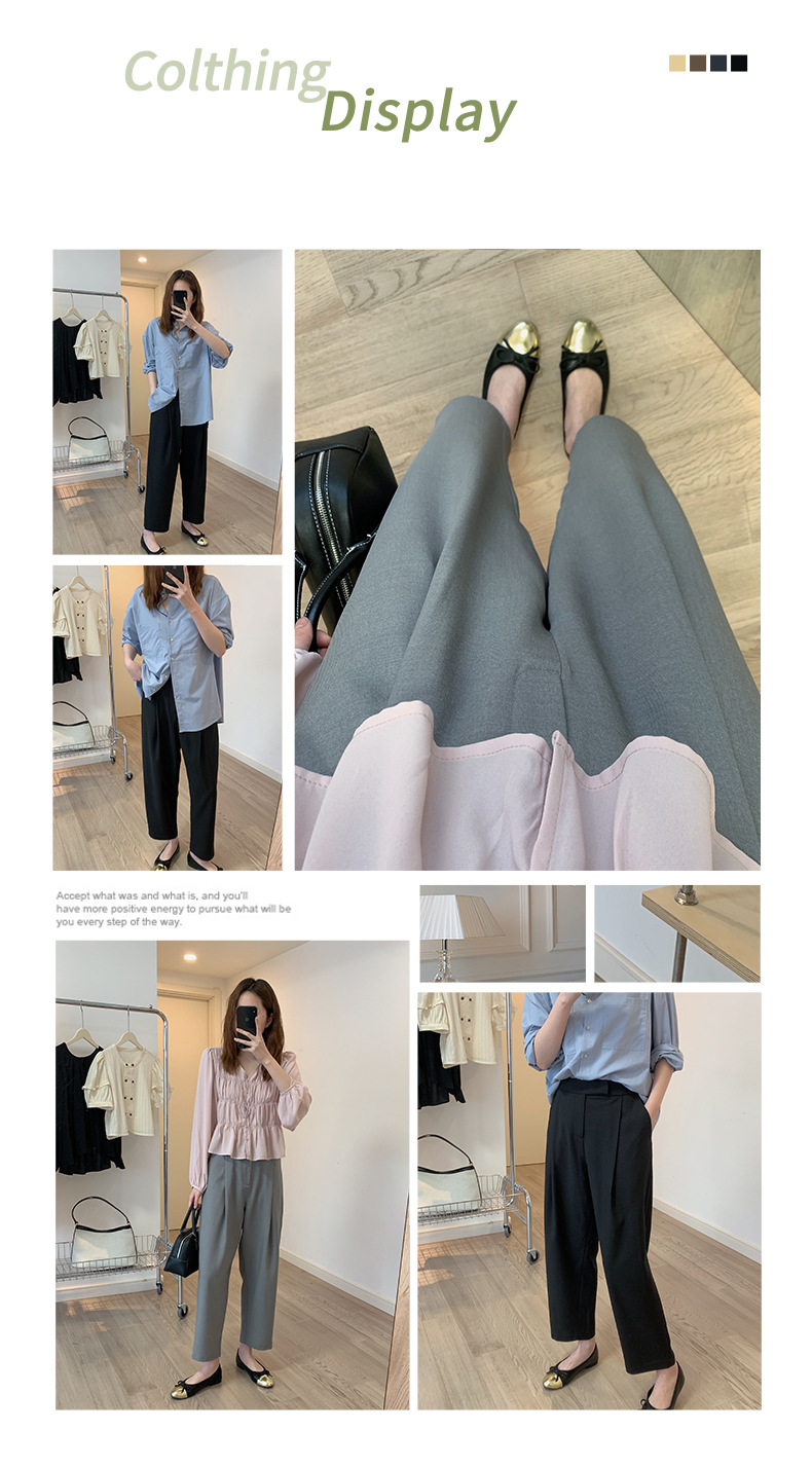 This classic style suit pants is perfect for spring and summer. It features a loose harem style, drooping feeling, high waist, and slim nine-piece design. It is perfect for any occasion and will make you look fashionable and stylish. It is made of high quality materials, and is sure to last. Get yours today!