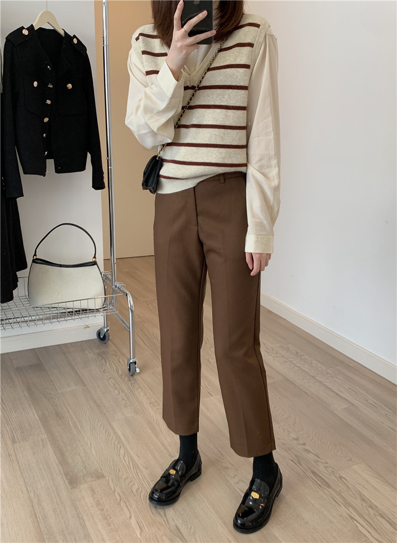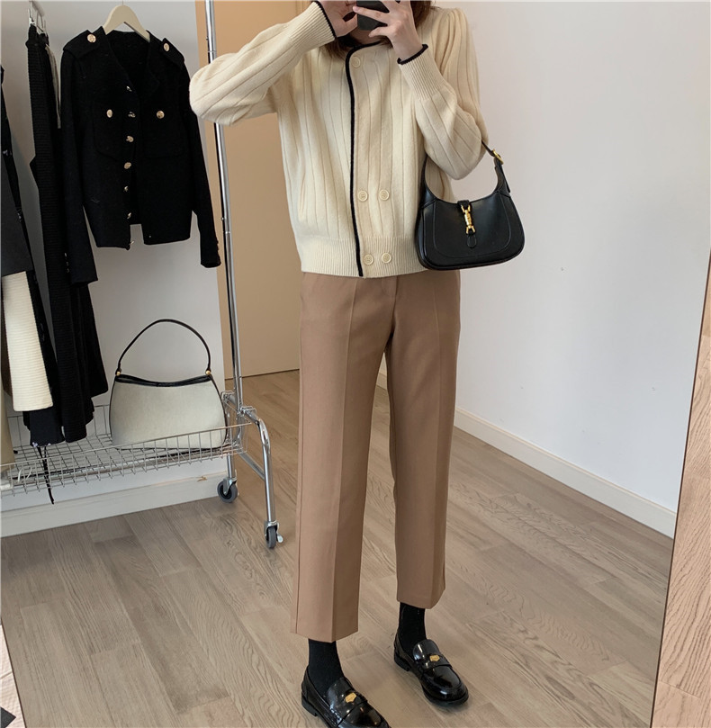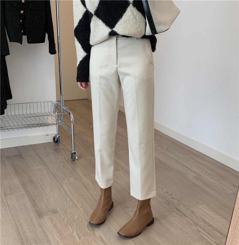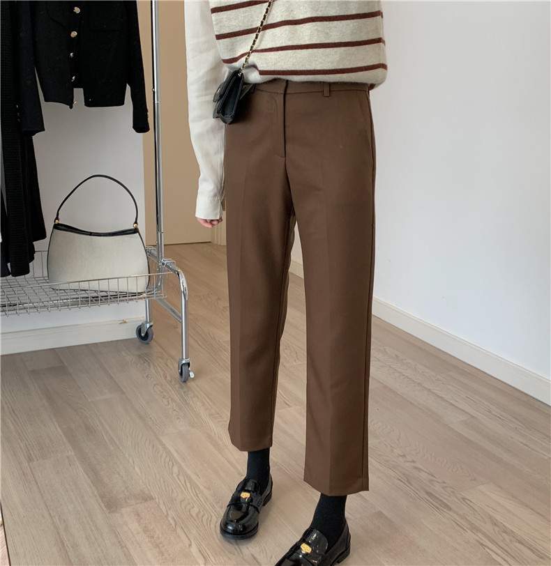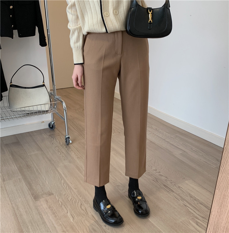 {"Style":"Urban Style","Thickness":"Medium","Elasticity":"Slight Elasticity","Pants Type":"Straight Leg Pants","Style Type":"Chic Commuting","Waist Type":"High Waisted","Fabric Name":"TR Fabric","Pant Length":"Nine-Inch Pants","Main Fabric Component 2":"Viscose Fiber","Main Fabric Composition":"Polyester (Polyester Fiber)","Main Fabric Component 2 Content":"30% or below","Main Fabric Composition Content":"80% (Excluding) - 90% (Including)"}