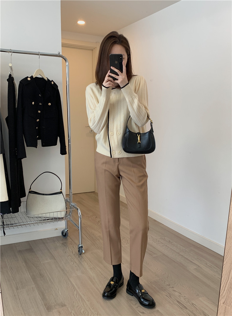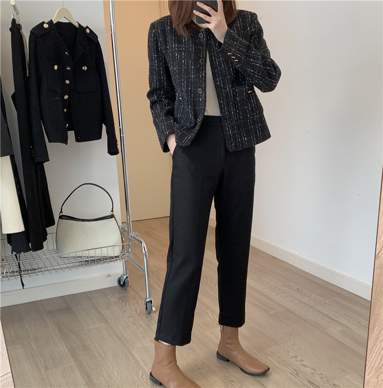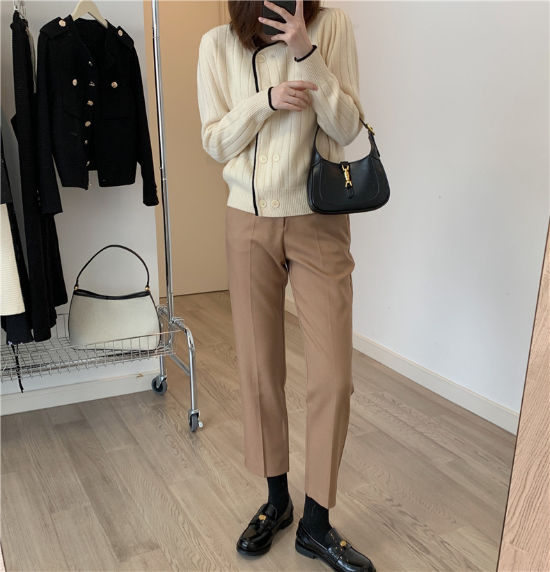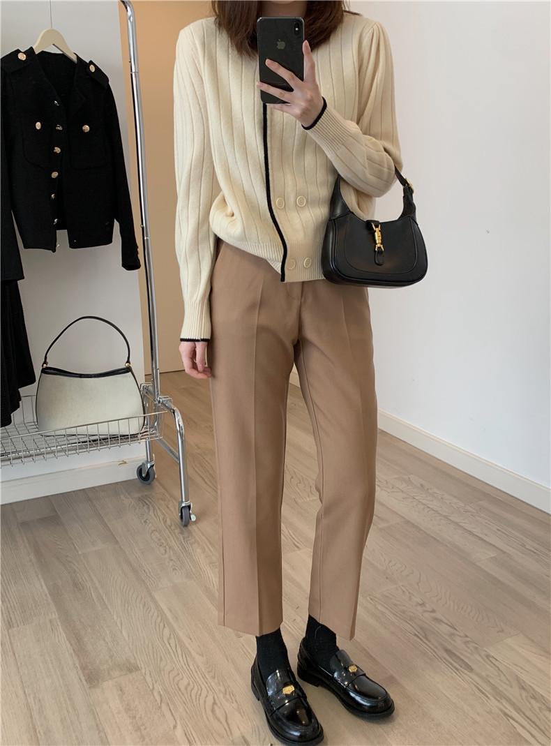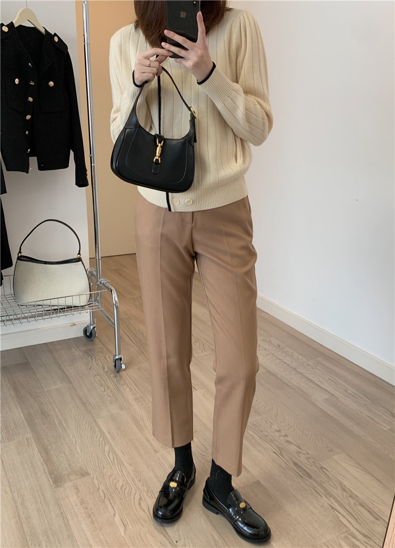 {"Style":"Urban Style","Thickness":"Medium","Elasticity":"Slight Elasticity","Pants Type":"Straight Leg Pants","Style Type":"Chic Commuting","Waist Type":"High Waisted","Fabric Name":"TR Fabric","Pant Length":"Nine-Inch Pants","Main Fabric Component 2":"Viscose Fiber","Main Fabric Composition":"Polyester (Polyester Fiber)","Main Fabric Component 2 Content":"30% or below","Main Fabric Composition Content":"80% (Excluding) - 90% (Including)"}