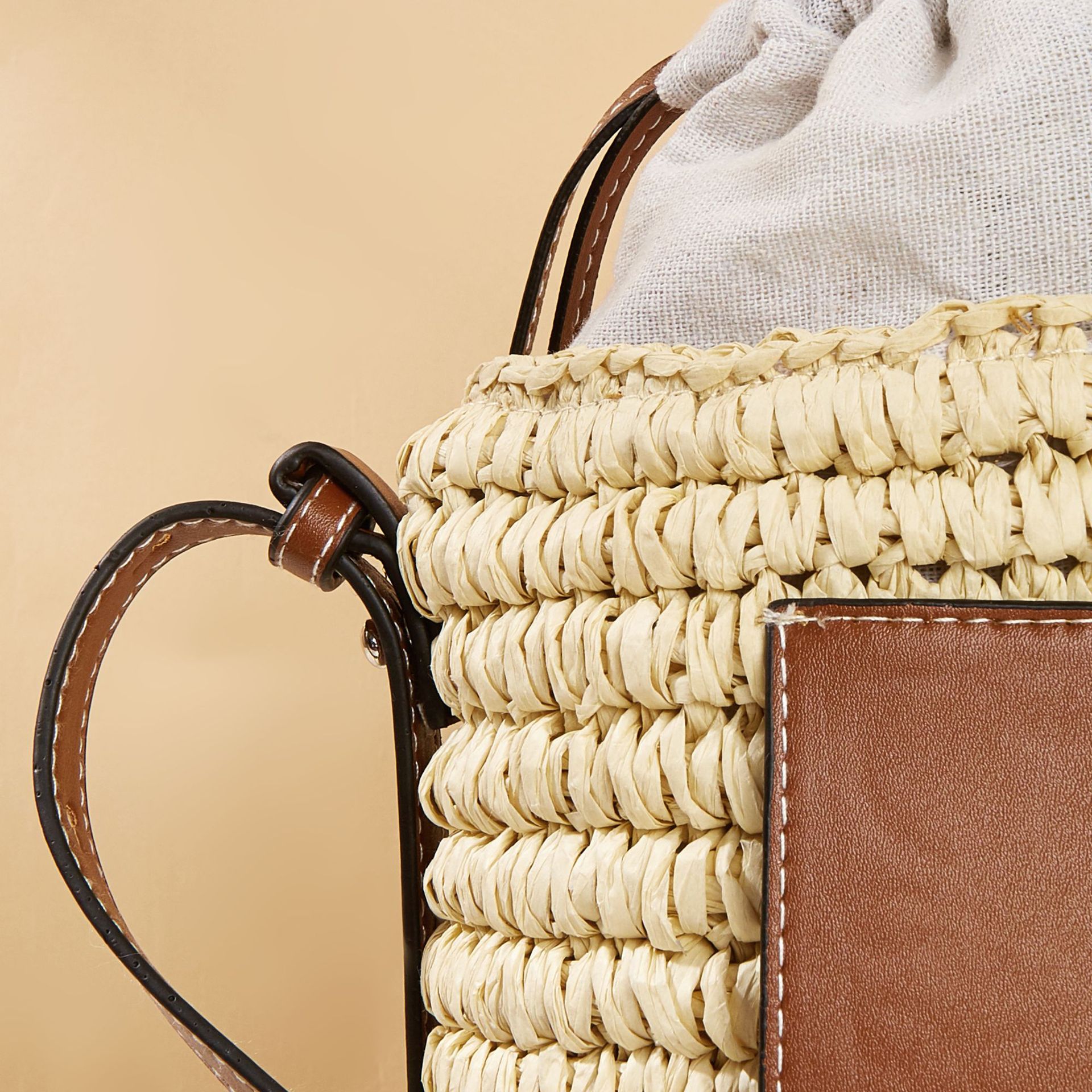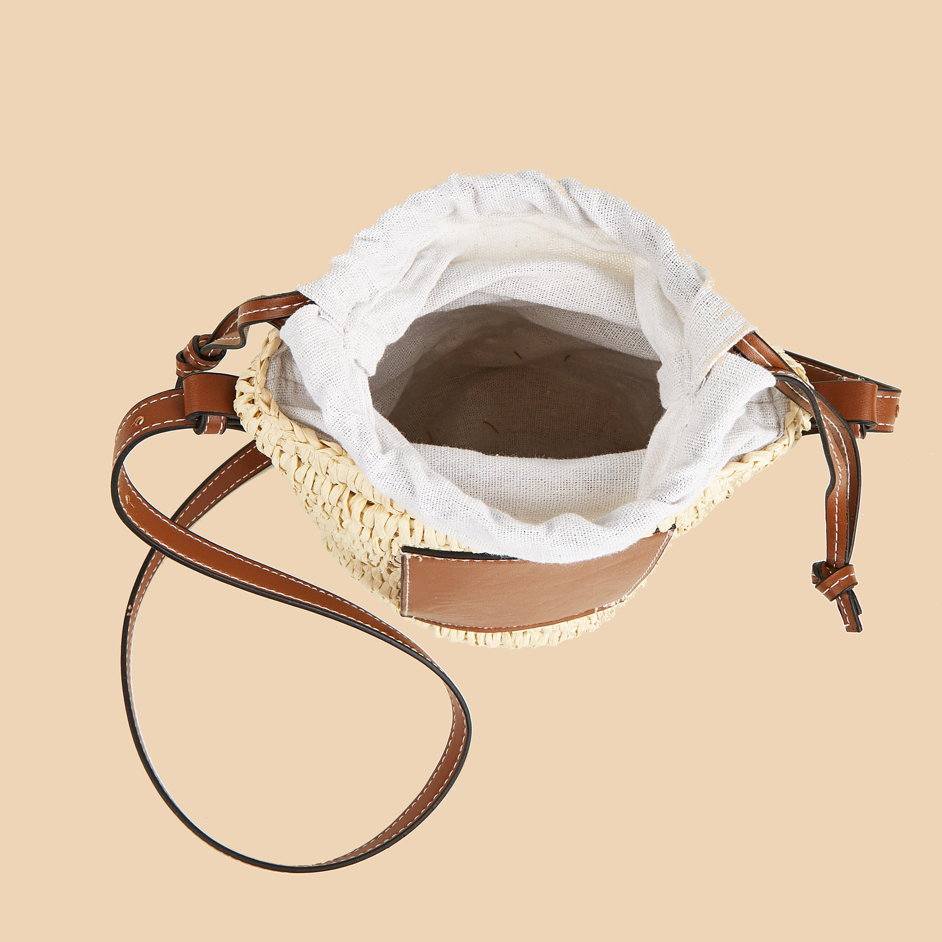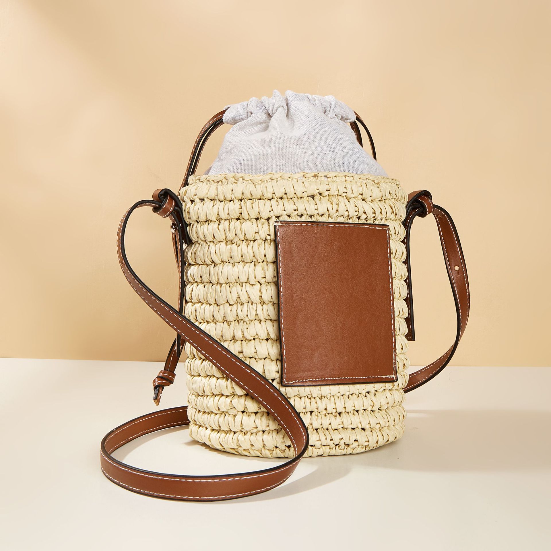 This Round Barrel Women's Bag is perfect for a seaside vacation. It comes with a water bucket design and is made of high-quality paper. It is simple and stylish, perfect for everyday use. It has a drawstring closure and a single handle. The interior is structured with a certificate pocket. It is lightweight and comfortable to carry. It is suitable for all occasions, making it a great choice for a vacation.