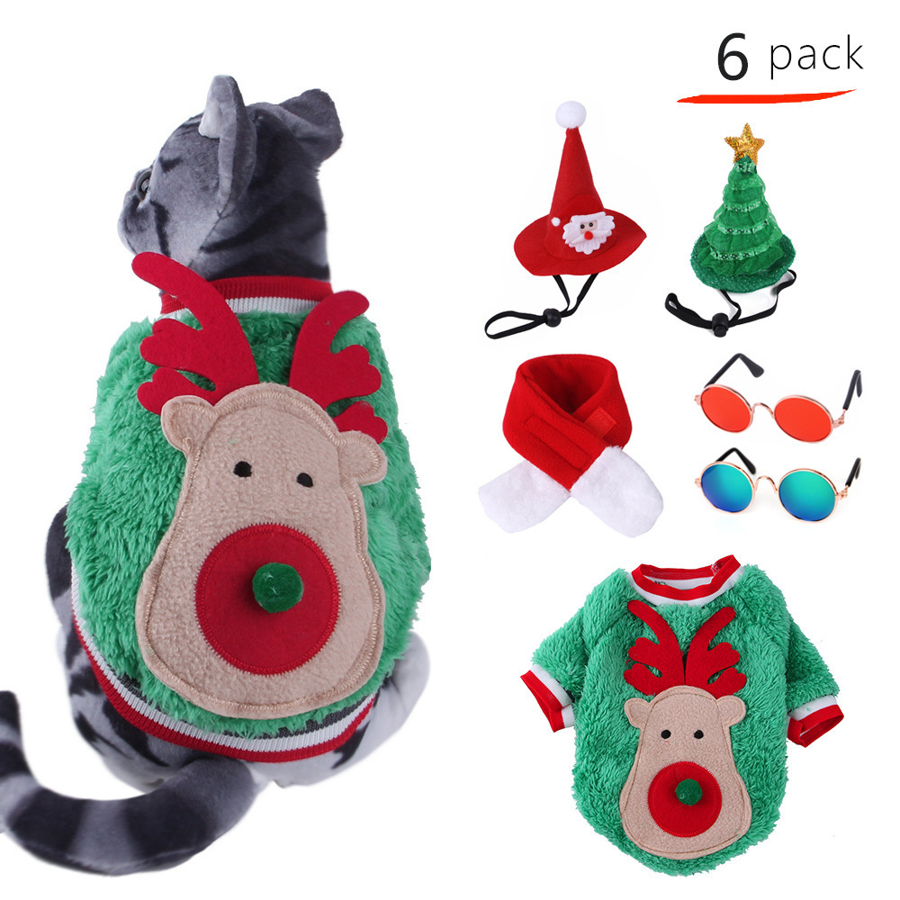 Christmas Pet Outfit Set - Durable Cotton Fabric, European-American Style, Universal Use, Non-Gift, Non-IP Item