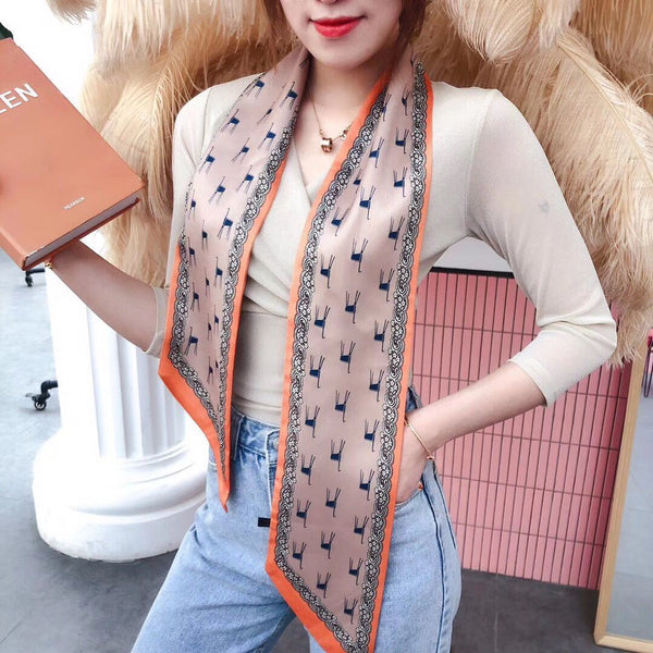 Women's Korean Style Multifunctional Narrow Long Scarf with Double-sided Diagonal Pattern