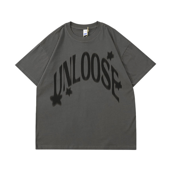 OVDY 23SS Retro Streetwear Letter Print T-Shirt for Men and Women, Breathable and Moisture Wicking, Comfort Fit for 18-24 Years Old