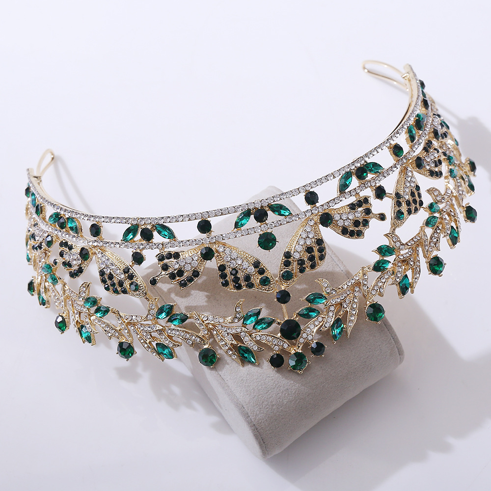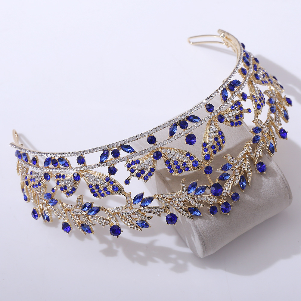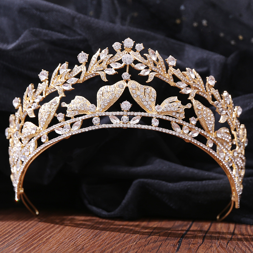 H1355 New Style Bijoux Butterfly Baroque Gold Princess Crown for Wedding Ceremony Bridal Headwear