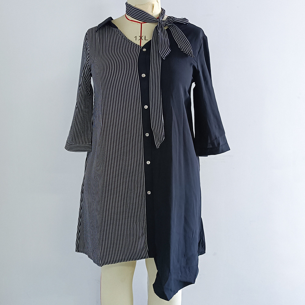 {"Style":"Elegant Style","Origin":"Dongguan","Pattern":"Stripes","Neckline":"V-Neck","Age Range":"Adults","Skirt Type":"A-Line Skirt","Style Type":"Chic Commuting","Waist Type":"Mid-Waist","Fabric Name":"Polyester","Sleeve Type":"Shirt Sleeve","Skirt Length":"Mid-length Skirt","Craftsmanship":"Piecing/Stitching","Sleeve Length":"Nine-inch Sleeve","Clothing Style":"European and American","Fashion Element":"Strap","Combination Form":"Single Piece","Cross-Border Style Type":"Comfortable Casual","Main Fabric Composition":"Polyester (Polyester Fibre)","Main Fabric Composition Content":"95% or more"}