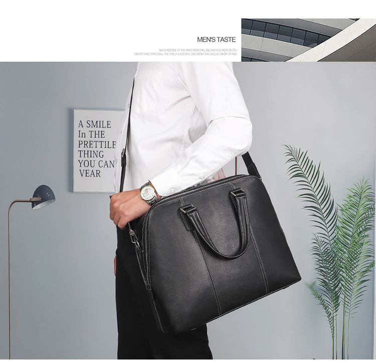 {"Model":"7439","Style":"Handbag","Origin":"Guangzhou","Pattern":"Solid Color","Bag Type":"Open Top Bag","Function":"Waterproof, Multifunctional, Computer Warehouse","Hardness":"Soft","Material":"Genuine Leather","Bag Shape":"Horizontal Square","Fabric Quality":"Polyester Cotton","Opening Method":"Zipper","Carrying Handle":"Soft Handle","Fashion Element":"Stitching","Laminated Layer":"Yes","Number of Straps":"Single","Application Scene":"Business Travel","Processing Method":"Embossing","Internal Structure":"Zipper Pocket, Document Pocket, Layered Zipper Pocket, Computer Insert Pocket","Gender Applicability":"Male","Latest Delivery Time":"2","Market Year & Season":"Spring 2023","Computer Size Capacity":"14 inches","Leather Characteristics":"Top-Grain Cowhide"}