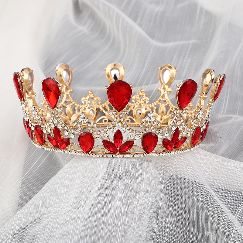 Stunning K9 Alloy Crown Jewelry with Red Zircon for Brides, Weddings and Gifts