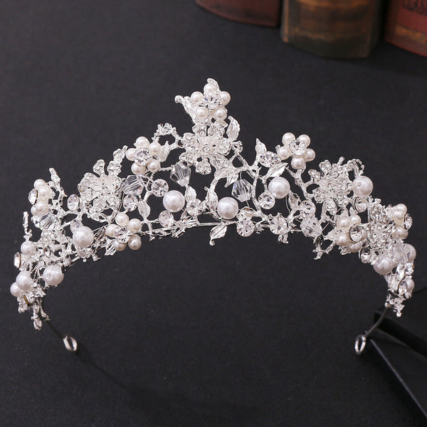 Handmade 9K Gold Crown for Bride with White Zircon Decoration