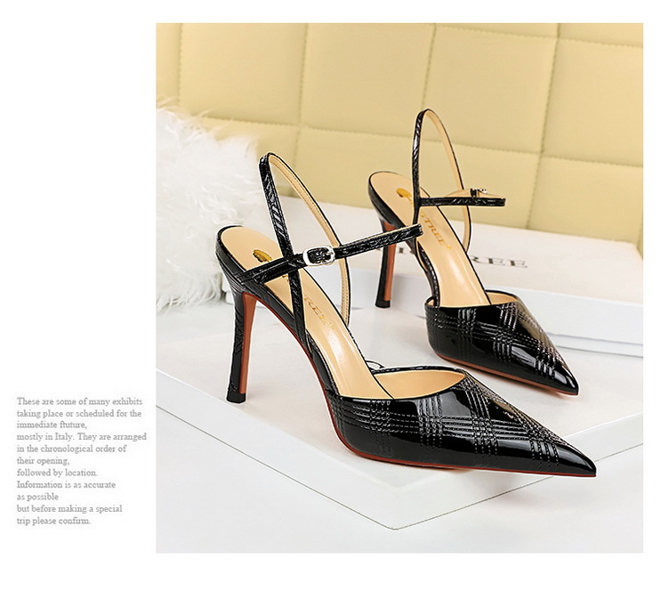 - ["Made of high quality leather material","Pointed toe design makes you look more stylish","High heel design makes your legs look slim and tall","One word strap design makes it easy to wear","Hollow out design makes it look more fashionable"]