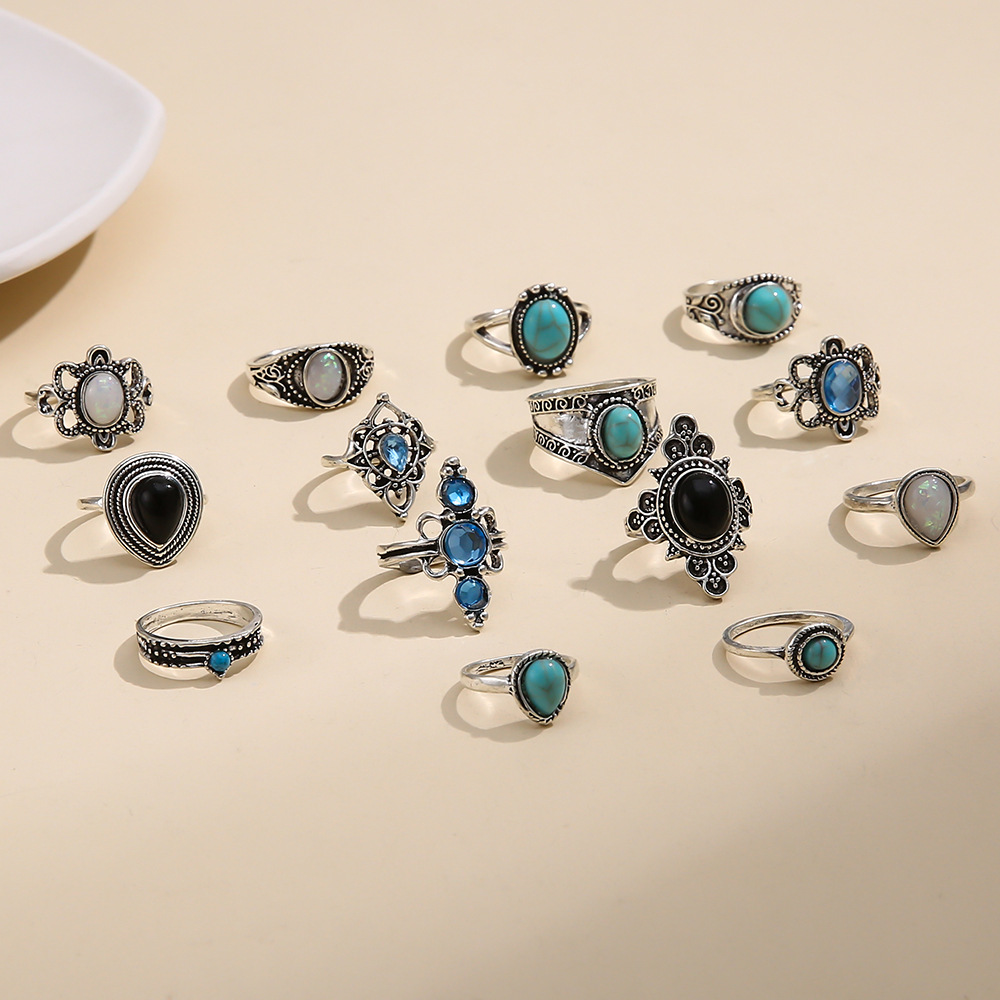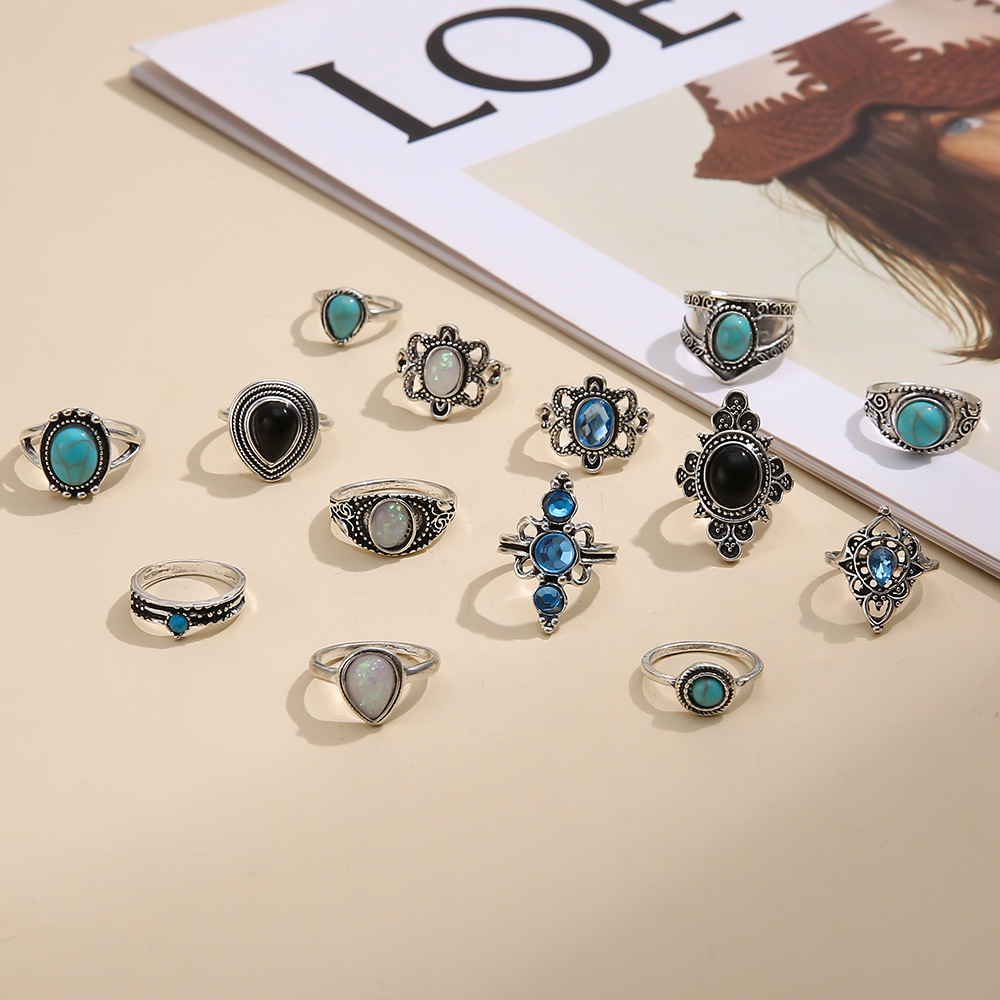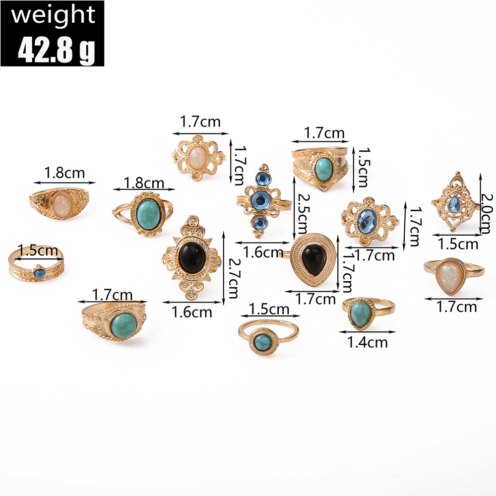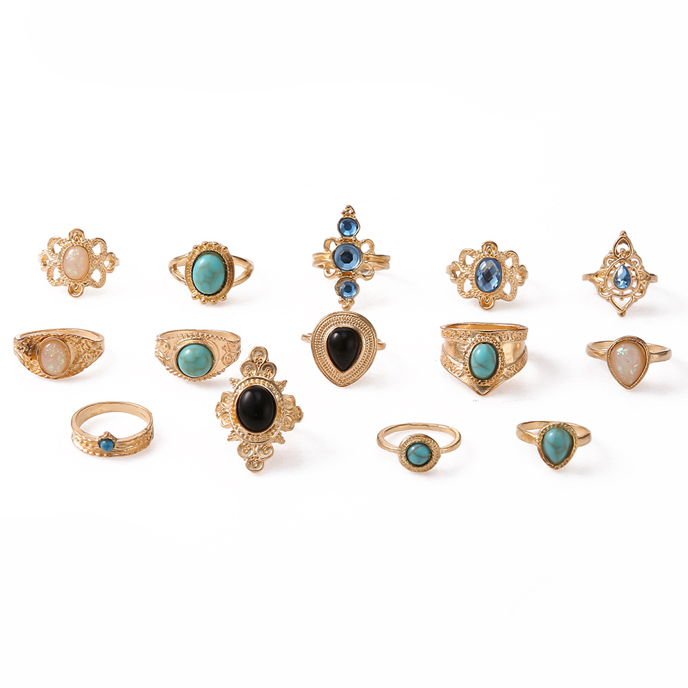 - ["14-piece gemstone ring set with gold alloy material","European-American style with jewelry processing","Suitable for festival gifts with independent packaging","Customization not available with SKU6169","Made in China with female style and alloy gold alloy half-jewelry stone"]