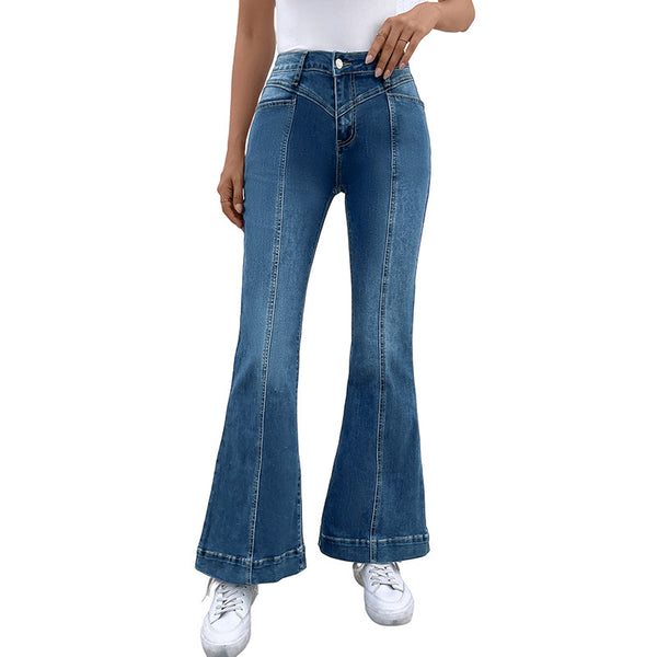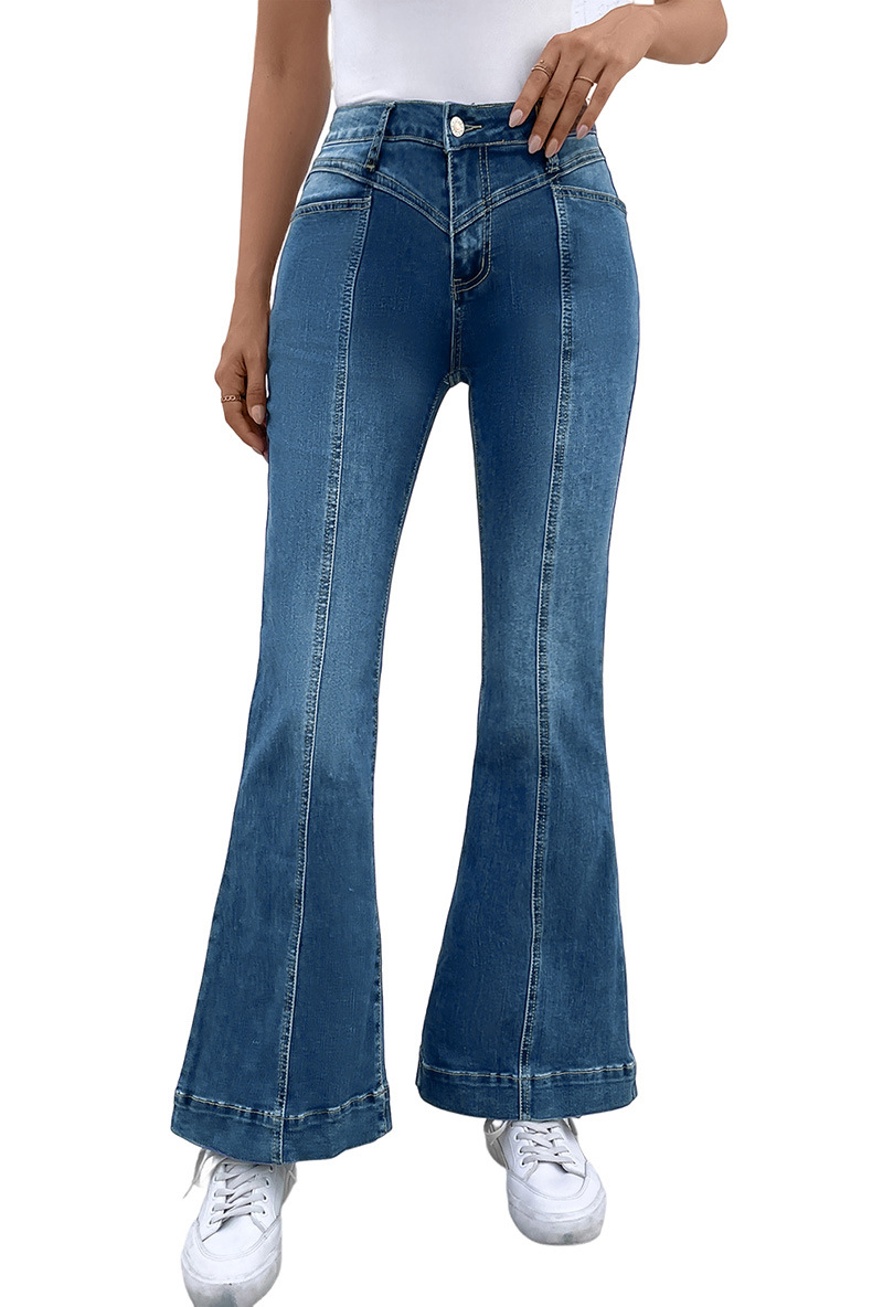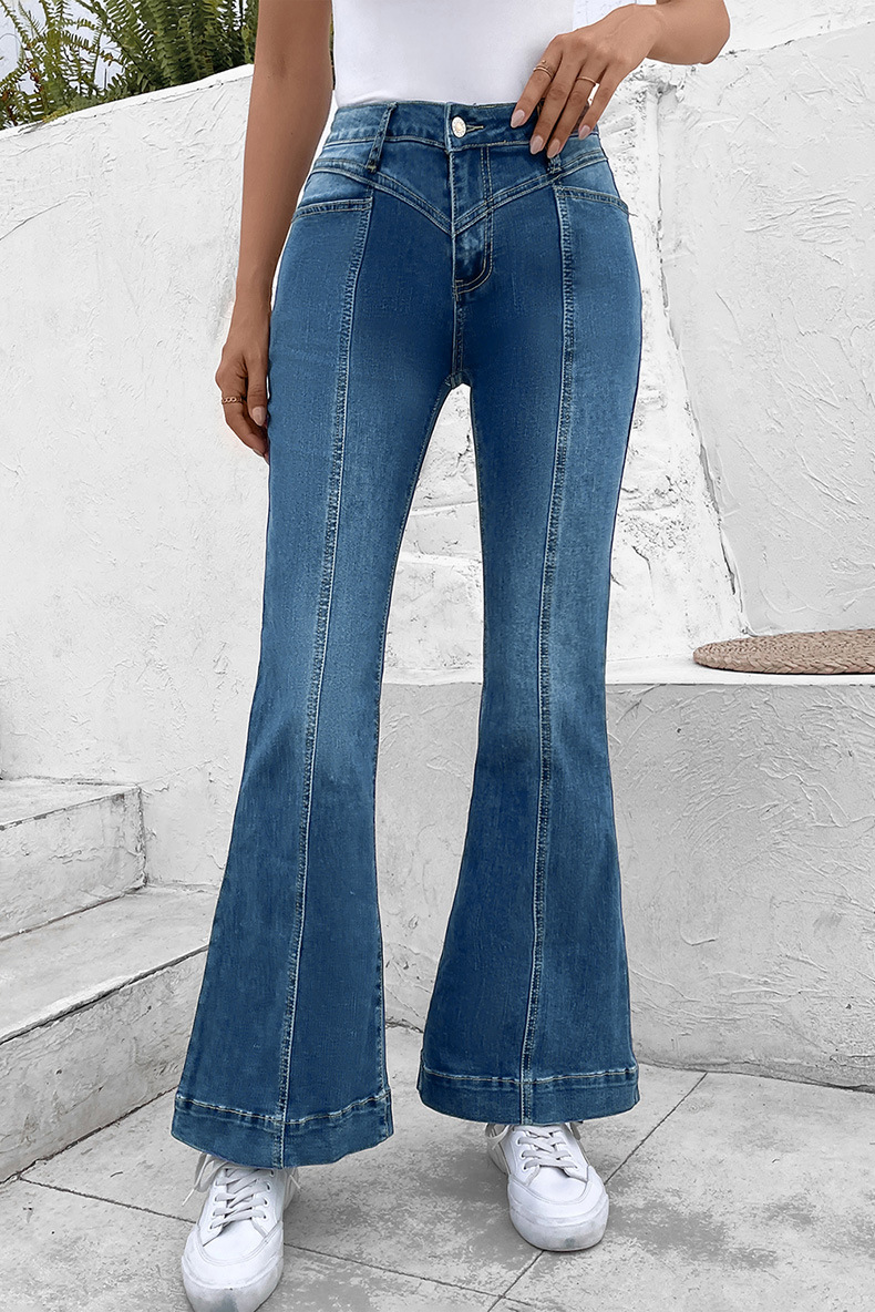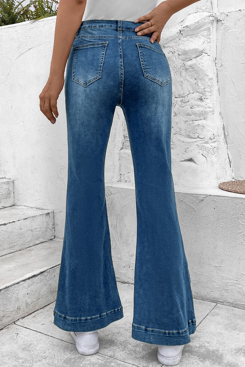 Pantalones de mezclilla sueltos de mujeres otoñales con 70% de algodón y 30% de poliéster, cintura alta, grosor medio, estampado floral, estilo casual