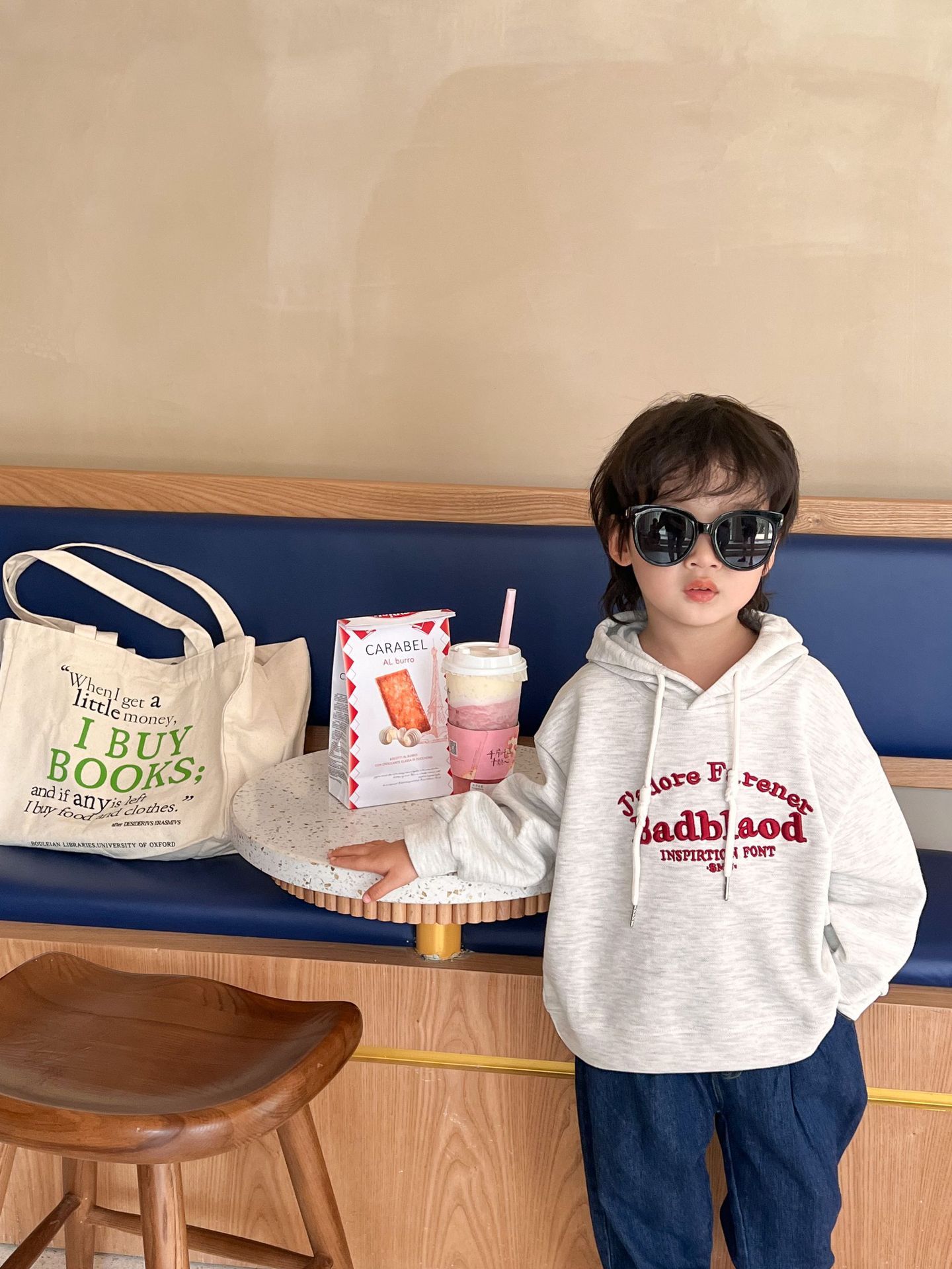 {"Style":"Korean Version","Hooded":"Yes","Origin":"Zhejiang","Pattern":"Alphabet","Thickness":"Regular","Fabric Name":"Cotton","Safety Level":"Class A","Actual Photos":"Actual photos with model","Closure Style":"Turtleneck","Sleeve Length":"Long Sleeve","Suitable Height":"90cm, 100cm, 110cm, 120cm, 130cm, 140cm","Suitable Season":"Spring and Autumn","Suitable Age Range":"Children (3~8 years old, 100~140cm)","Gender Applicability":"Unisex/Suitable for Both Men and Women","Main Fabric Composition":"Cotton","Season and Year of Release":"Autumn 2022","Trimmed Loose Threads/Fuzz":"Obvious Areas Trimmed","Needle Pitch 12~14 Needles/3cm":"No","Main Fabric Composition Content":"90"}