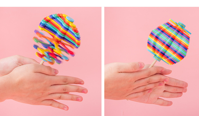 - ["Made of high quality wood material","Rotating lollipop design for stress relief","Suitable for kids aged 4-6","Non-electric, non-functional and non-DIY","Packaged in colorful box"]