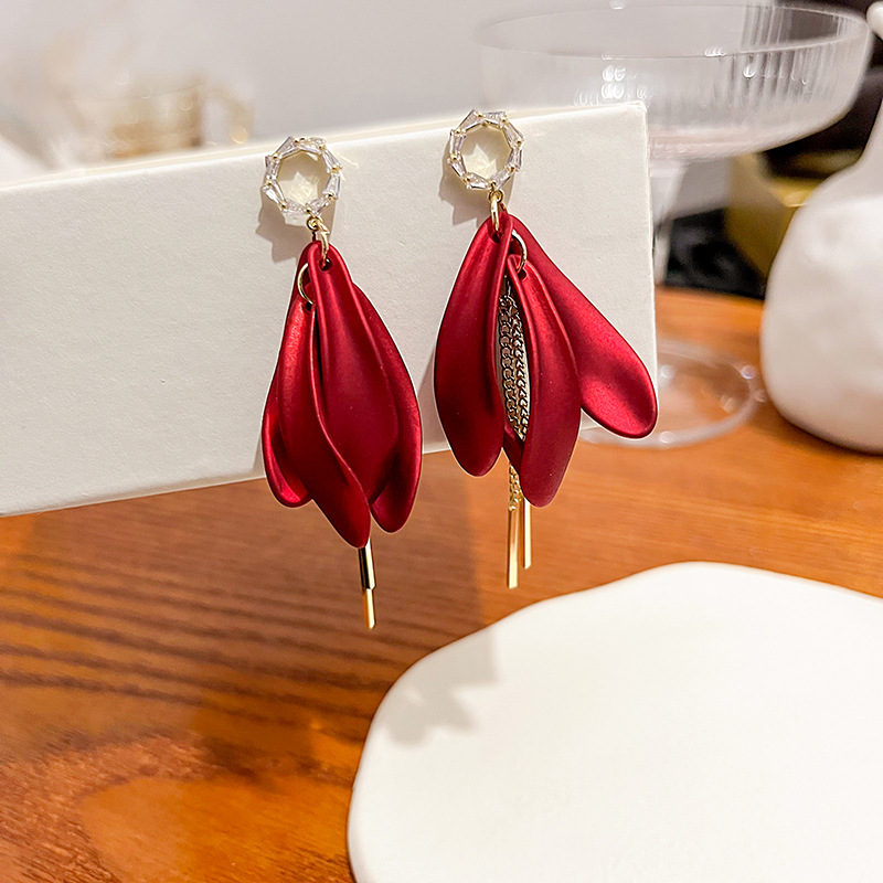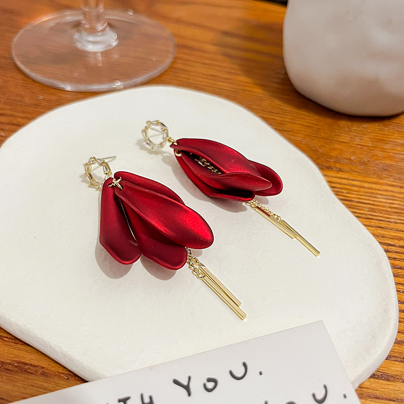 - ["925 Silver material","Red Tassel design","Long Earrings style","Fashionable and Net Red","Celebratory New Year"]