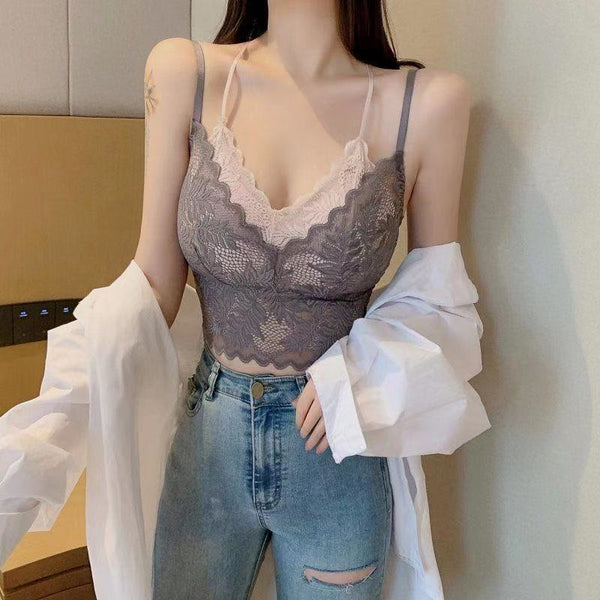 Summer Gel Cross Back Bra for Women, Sexy Lace Two-piece Push-up Bra