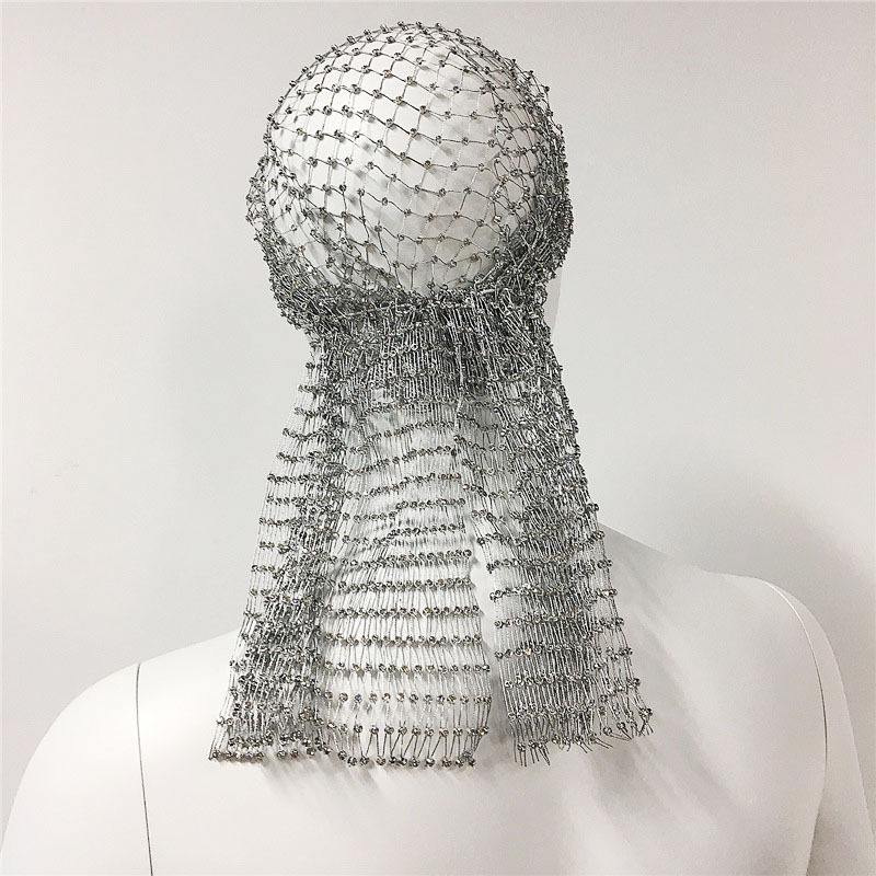 Fashionable Netted Headscarf with Attached Rhinestones for All Seasons