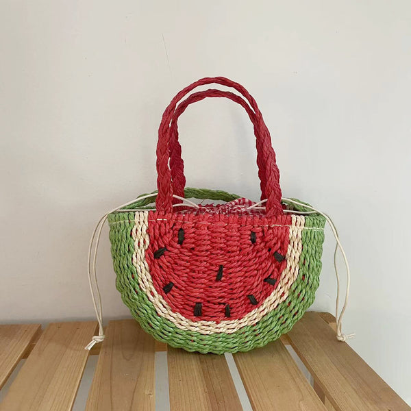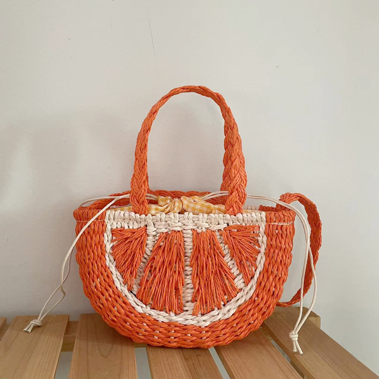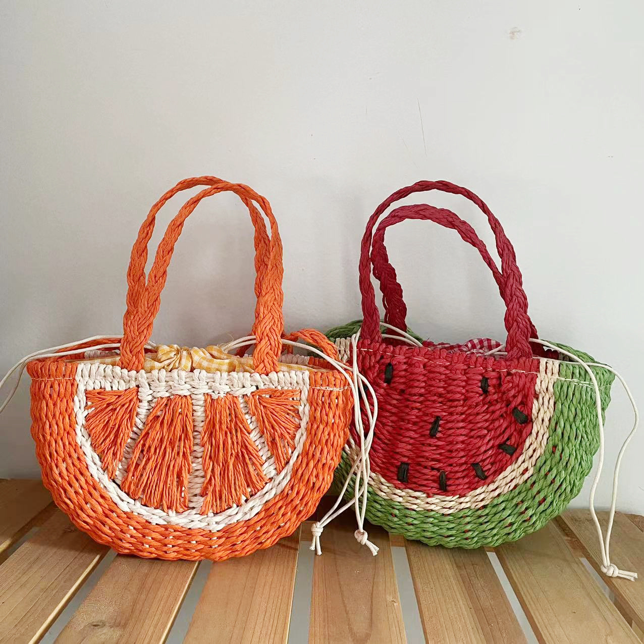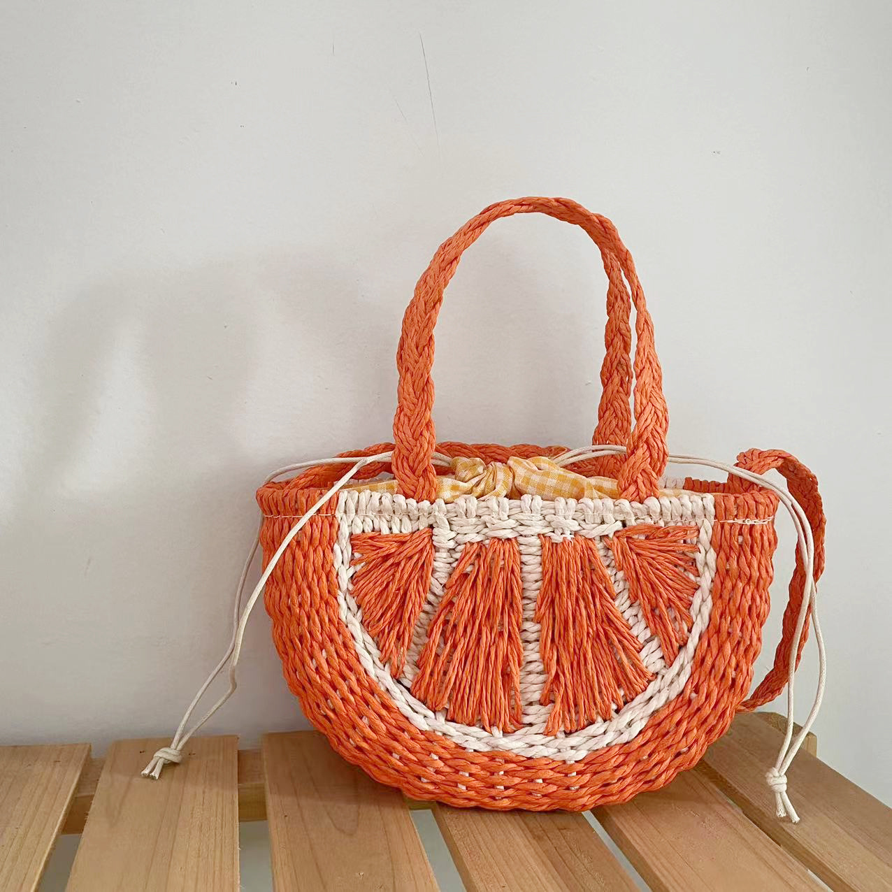 Cute Cartoon Embroidered Grass Weaving Bag for Kids - Perfect for Everyday Wear