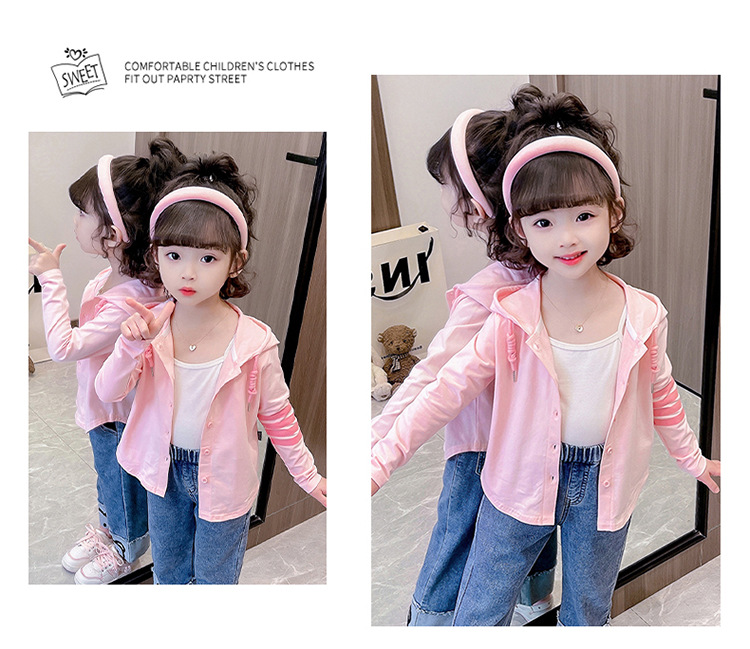 {"Style":"Korean Version","Pattern":"Striped, Solid","Actual Photo":"Actual Photo with Model","Safety Level":"Class B","Hooded or Not":"Non-detachable Hood","Suitable Height":"90cm, 100cm, 110cm, 120cm, 130cm, 140cm, 90-140/1 hand please take 6 pieces","Suitable Season":"Spring","Applicable Gender":"Female","Suitable Age Range":"Children (3-8 years old, 100-140cm)","Market Year & Season":"Spring 2023","Main Fabric Composition":"Cotton","Needle Pitch 12~14 Needles/3cm":"No","Main Fabric Composition Content":"85"}