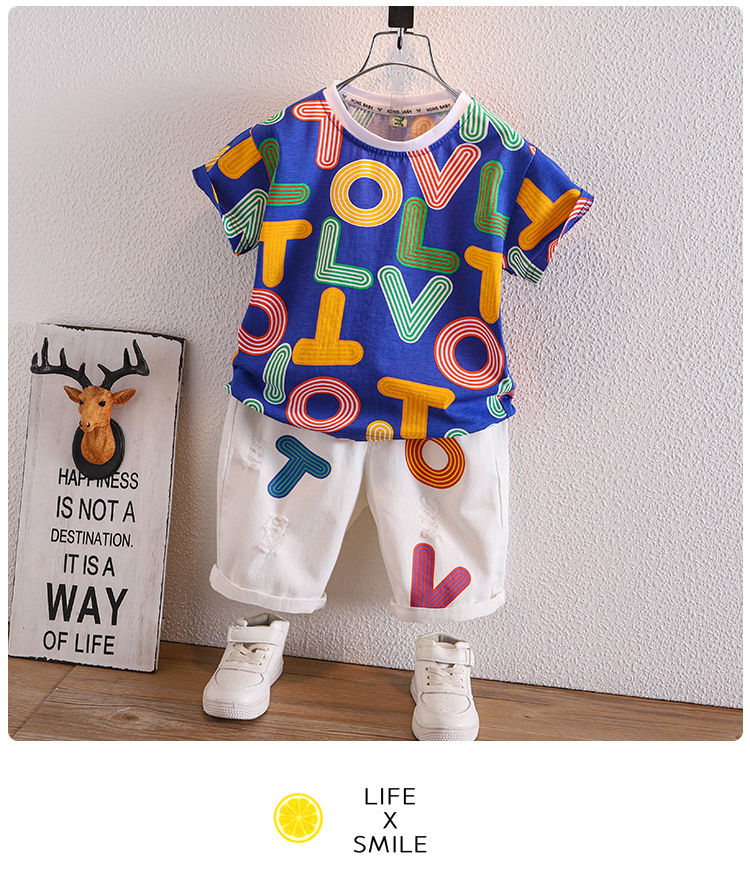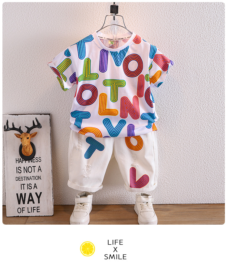 Boy's Letter Sports Suit Set with Two Pieces Short Sleeve New Style for 8 Years Old and Above