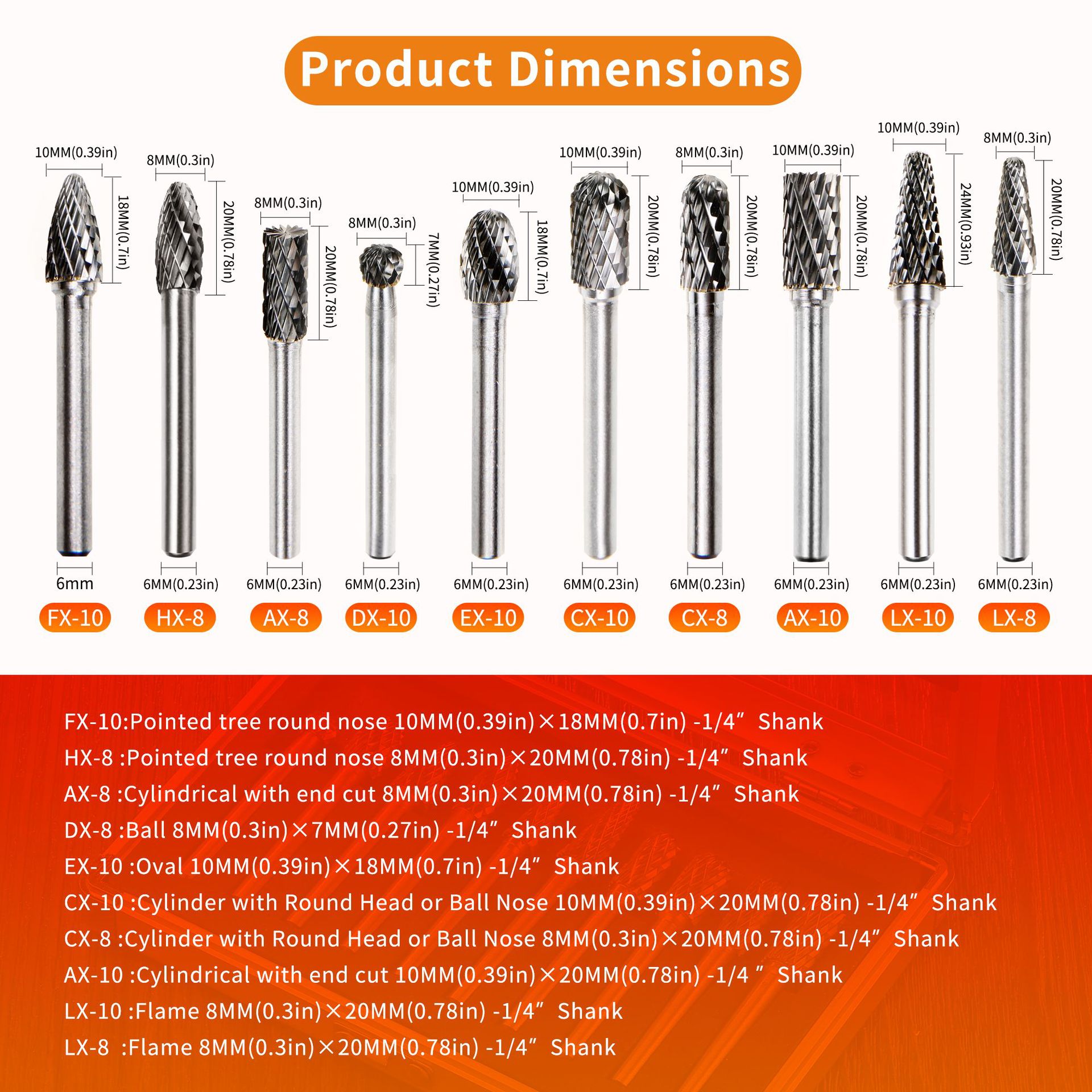 - ["Made of Gold Alloy and Tungsten Steel Grinding Head for Durability","10x6mm Size for Versatile Use","Double Slot Design for Easy and Fast Grinding","Customized Design for Special Needs","10pcs for Long-term Use"]