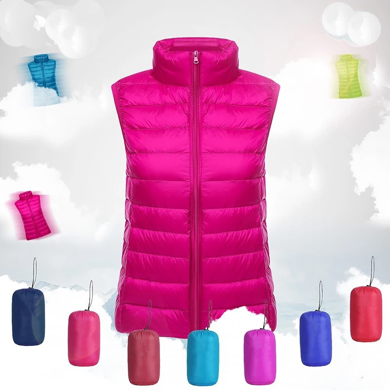Women's Lightweight Down Vest, 51%~55% Down Content, Pull Zip Closure, Loose Fit, No Detachable Fur