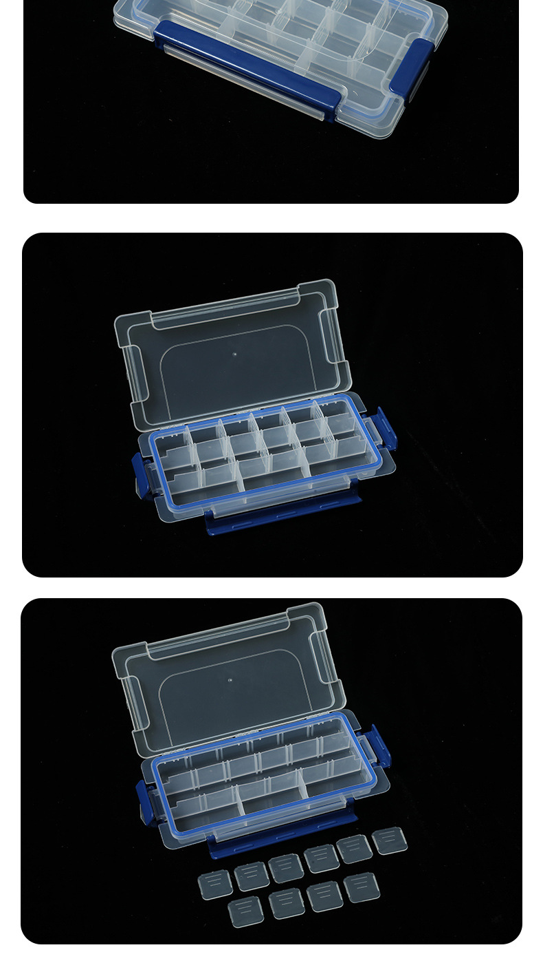 - ["Small 15 Grid Transparent Sealed Plastic Box for Cosmetics, Needles, Fishing Gear, Jewelry, Storage","Made of PP/PS material, 80%-99% new material","Suitable for wide range of scenes such as car, living room, bedroom, study room, garden, restaurant, kitchen, bathroom, table, etc.","Features with compartments and locks for extra security","Made in Yiwu, China"]