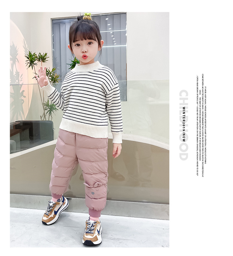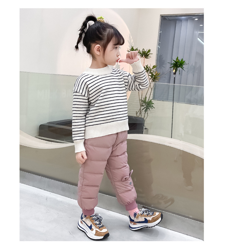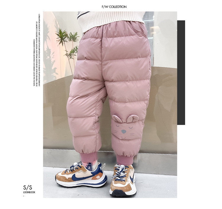 Korean Style Windproof Warm Pants for Girls, 85% Cotton Blend, B Safety Grade, Long Pants, Suitable for 3-8 Years Old Children