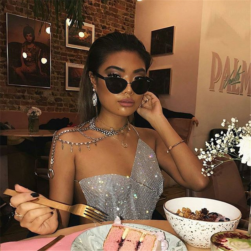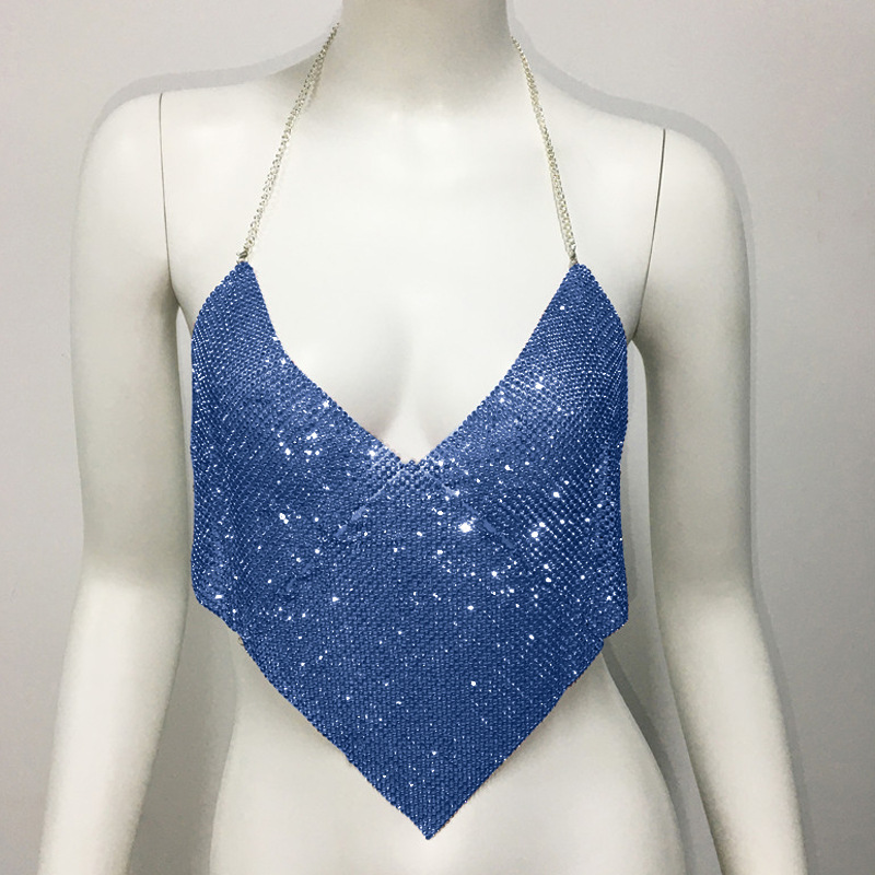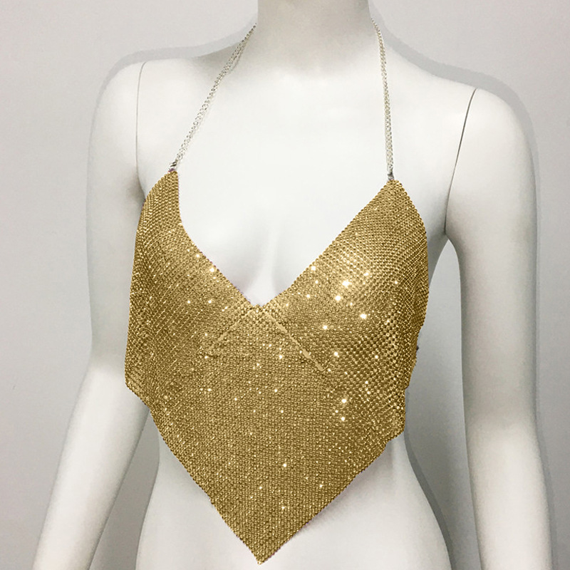 - ["Sexy and stylish design","Made of high-quality materials","Embellished with water diamond","Featuring a metal chain belt","Perfect for night parties"]