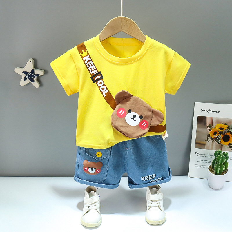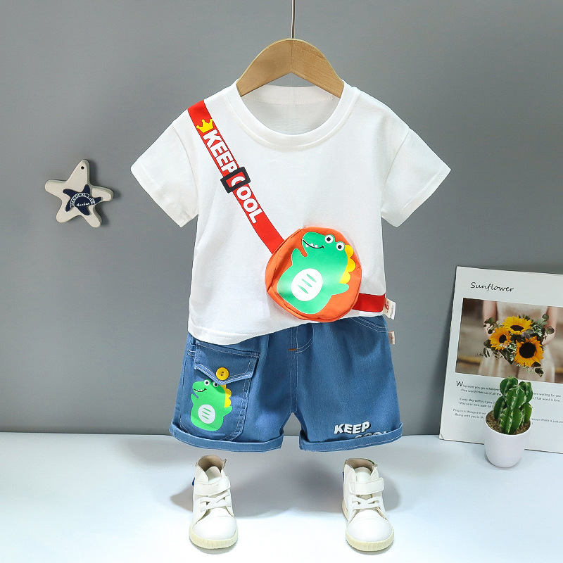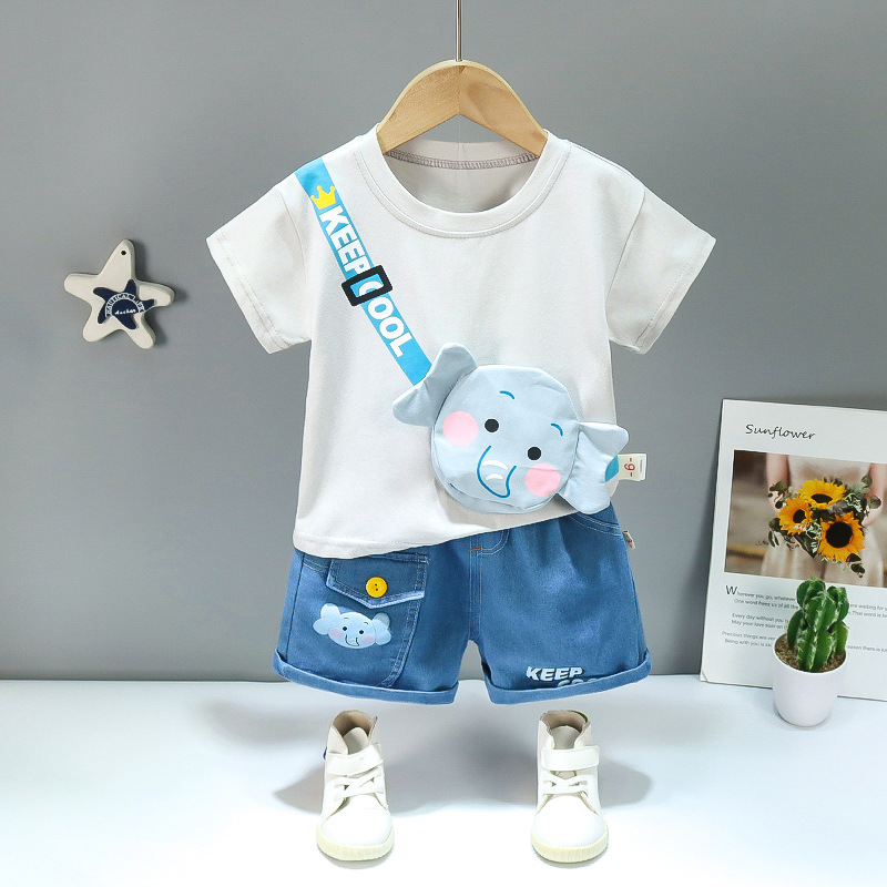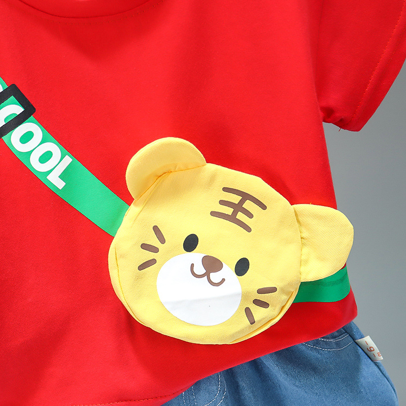Summer New Children Cartoon Bag Suit Short Sleeve Two-piece Set for Boys and Girls