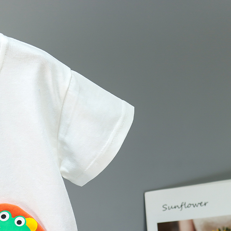 {"Style":"Casual","Hooded":"No Hood","Origin":"Zhejiang","Element":"Suit, Can be Opened","Pattern":"Animals, Cartoon","Age Range":"Infants and Toddlers (1-3 years, 80-100cm)","Suit Type":"Pants Suit","Thickness":"Thin","Fabric Name":"Cotton","Pant Length":"Shorts","Safety Level":"Class B","Actual Photos":"Actual photos without models","Closure Style":"Turtleneck","Sleeve Length":"Short Sleeve","Suitable Height":"80cm, 90cm, 100cm, 110cm, 120cm, 80cm-120cm/1 set of 5","Gift Box Content":"Clothing","Fabric Craftsmanship":"Grinding, Shearing, Softening Treatment, Enzyme Washing","Gender Applicability":"Unisex/Both Men and Women","Market Year & Season":"2023 Summer","Seasonal Suitability":"Summer","AQL Inspection Standard":"1.0","Main Fabric Composition":"Cotton","Number of Pieces in Set":"Two-Piece Set","Trimmed Ends/Loose Threads":"All Trimmed Neatly","Needle Pitch 12~14 Needles/3cm":"No","Main Fabric Composition Content":"93"}