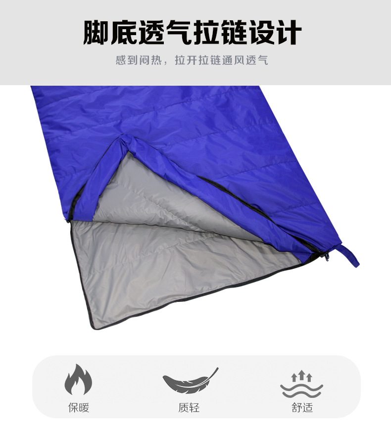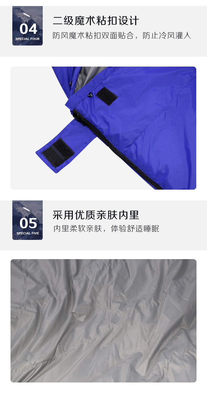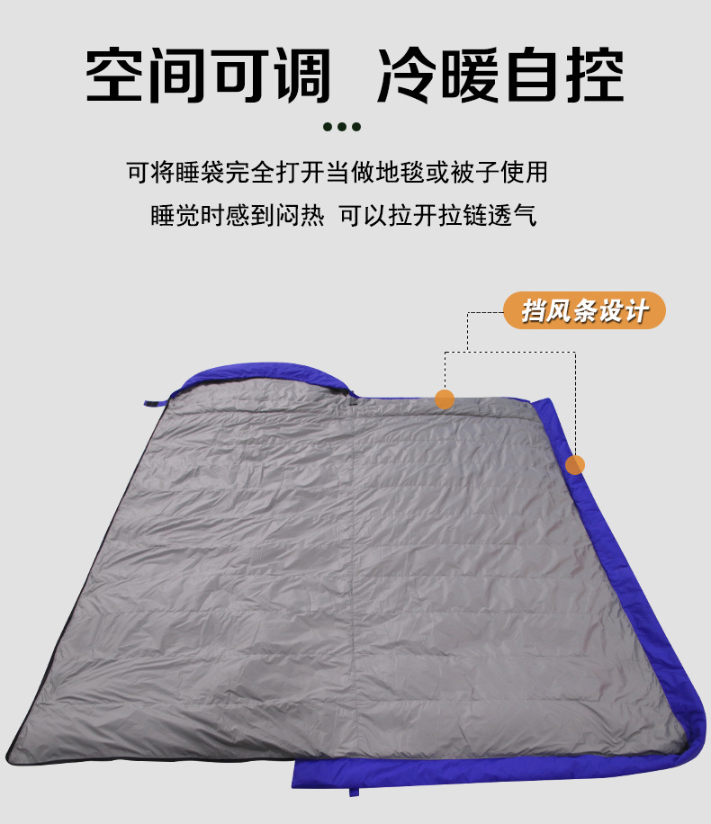 Flame Blue Sleeping Bag - 210*80cm 2000g Filling, 320T Ripstop, Adult, Windproof