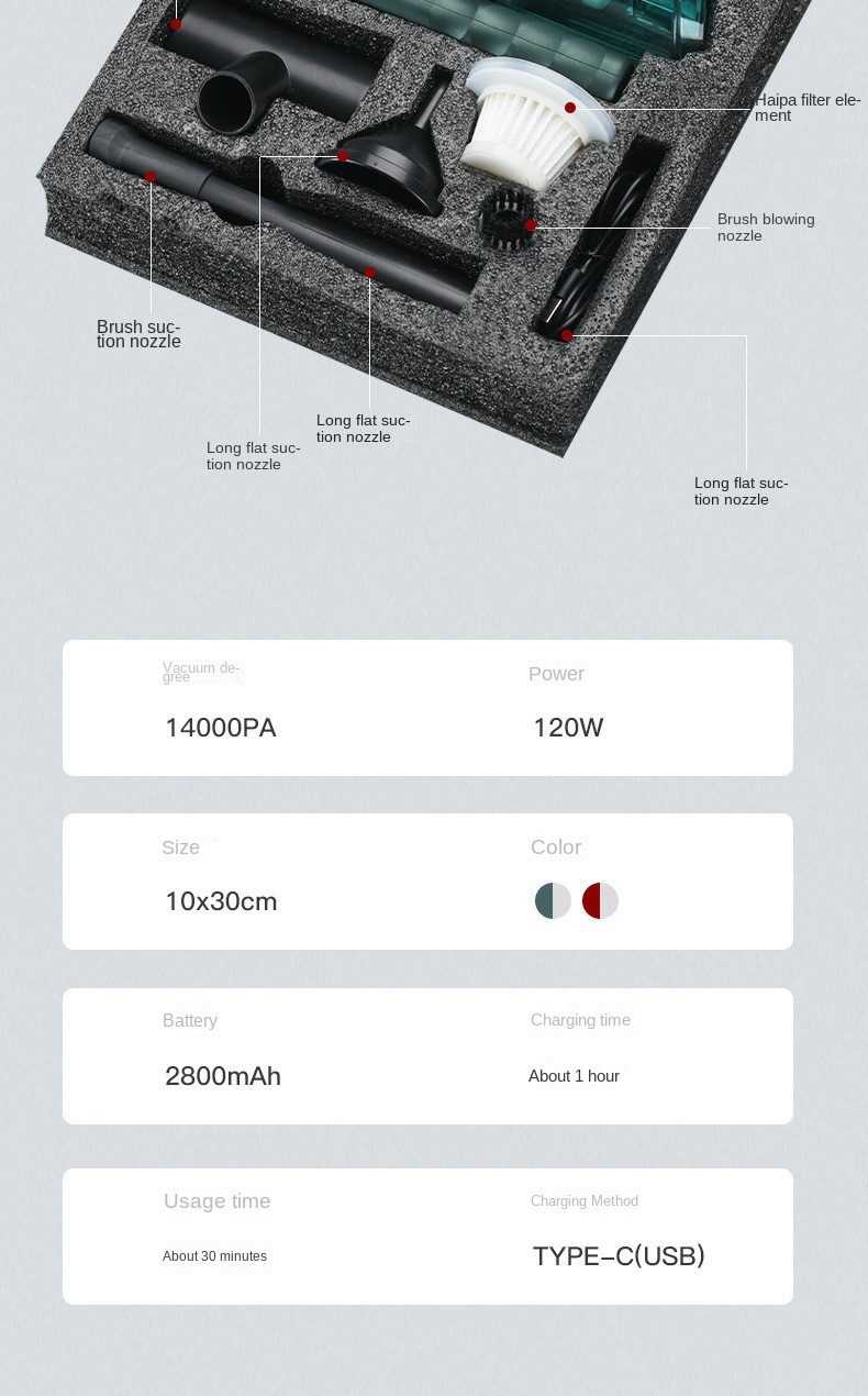 Wireless Handheld Vacuum Cleaner with 7.4V 80W 9000Pa
