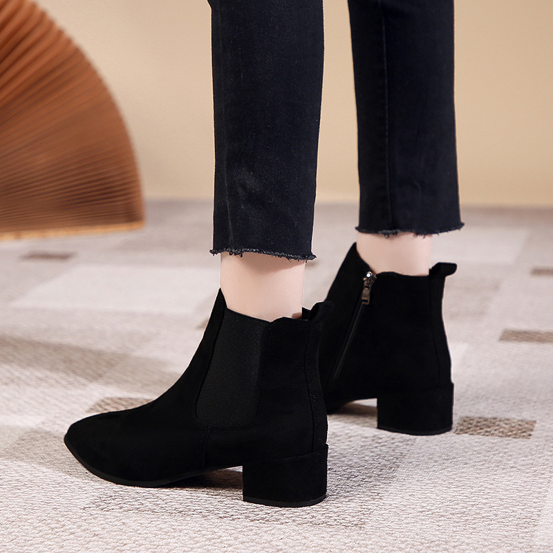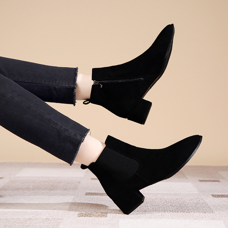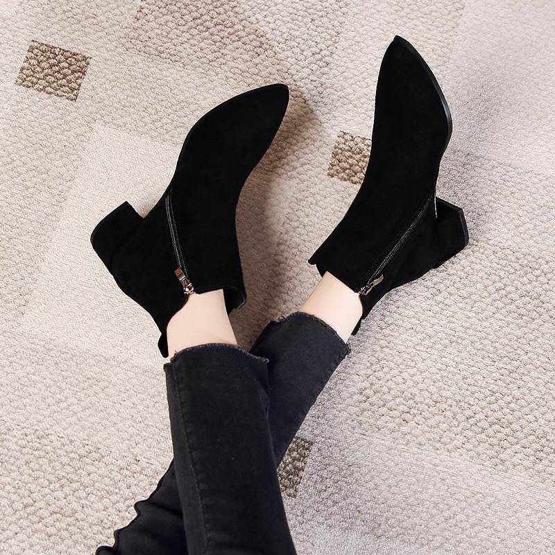 - ["Made of high quality PU material, durable and comfortable to wear","Fashionable mid heel design, perfect for any occasion","Pointed toe and chunky heel design, stylish and chic","Side zipper closure for easy on and off","Suitable for spring and autumn"]