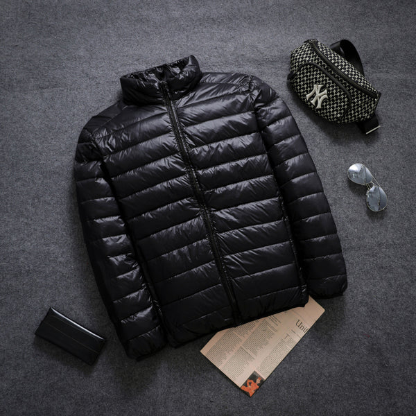 Lightweight White Duck Down Jacket for Men with Basic Collar Style, Fits 24-35 Years Old