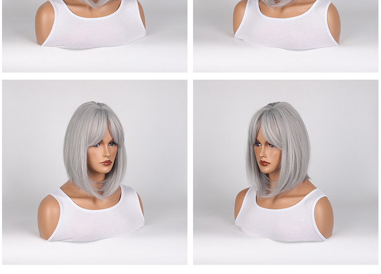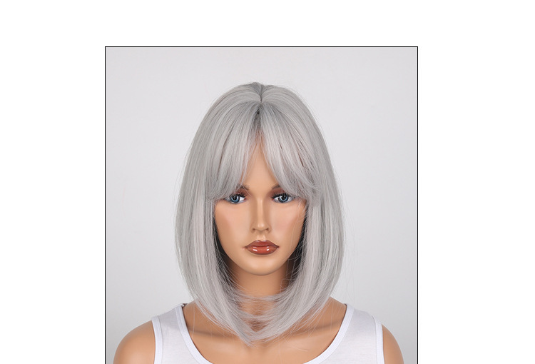 Hot Selling 8-Character Liu Hai Gray Bob Hairpiece, Perfect for Any Skin Tone and Face Shape