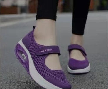 Women's Summer Mesh Sneakers, Breathable, Waterproof Platform Shoes, PU Outsole, 7cm Low-cut, Magic Stick Fastening, 4 Colors