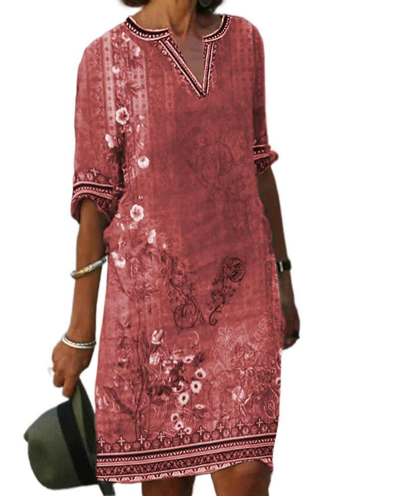 {"Style":"Ethnic Style","Pattern":"Plant and Flower","Neckline":"Pullover","Skirt Type":"A-Line Skirt","Style Type":"Vintage Retro","Waist Type":"Loose Waist","Collar Type":"V-Neck","Fabric Name":"Polyester","Sleeve Type":"Regular Sleeve","Skirt Length":"Midi Skirt","Craftsmanship":"Printing","Sleeve Length":"Five-Quarter Sleeve","Combination Form":"Single Piece","Cross-border Style Type":"Comfortable Casual","Main Fabric Component 2":"Spandex","Main Fabric Composition":"Polyester Fibre","Main Fabric Component 2 Content":"Less than 30%","Main Fabric Composition Content":"95% and above"}