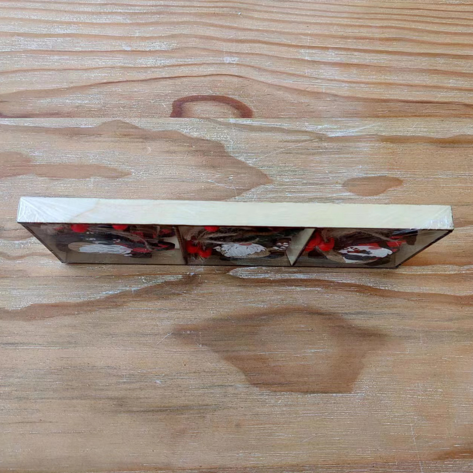 - ["Made of high-quality MDF and cloth material, durable and long lasting","3-Grid box design, perfect for Christmas decoration","Santa Claus Pendant, HOHO Public Suit, Santa Claus Pendant, Fleece Hat Suit, stylish and beautiful","Suitable for Christmas Day, add a festive atmosphere to your home","European and American style, perfect for Christmas gifts"]
