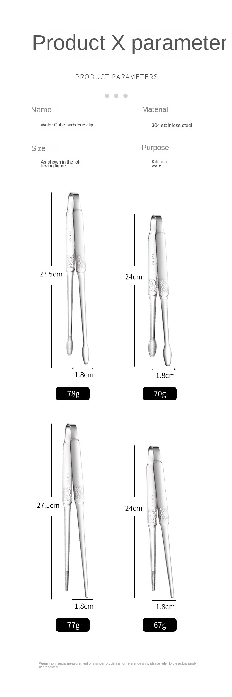 304 Stainless Steel Korean BBQ Tongs 10 Inch 12 Inch Pointed Round Head