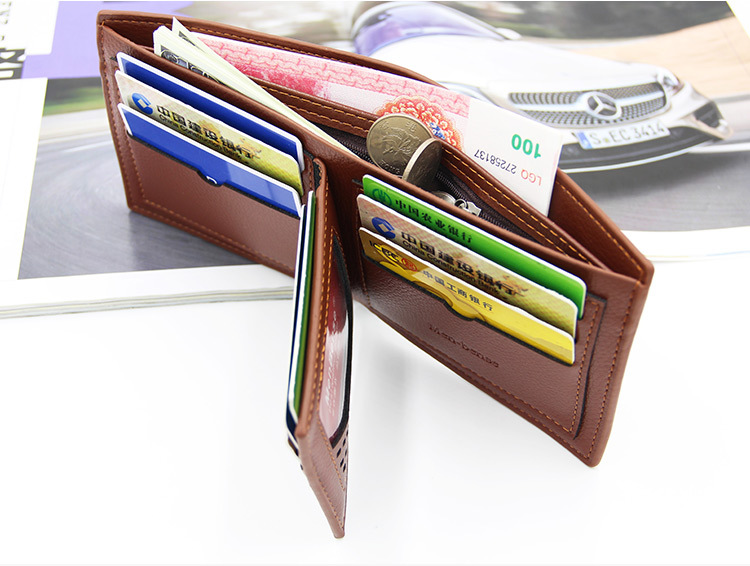 Men PU 3 veces la billetera con múltiples ranuras para tarjetas y bolsillo de cremallera