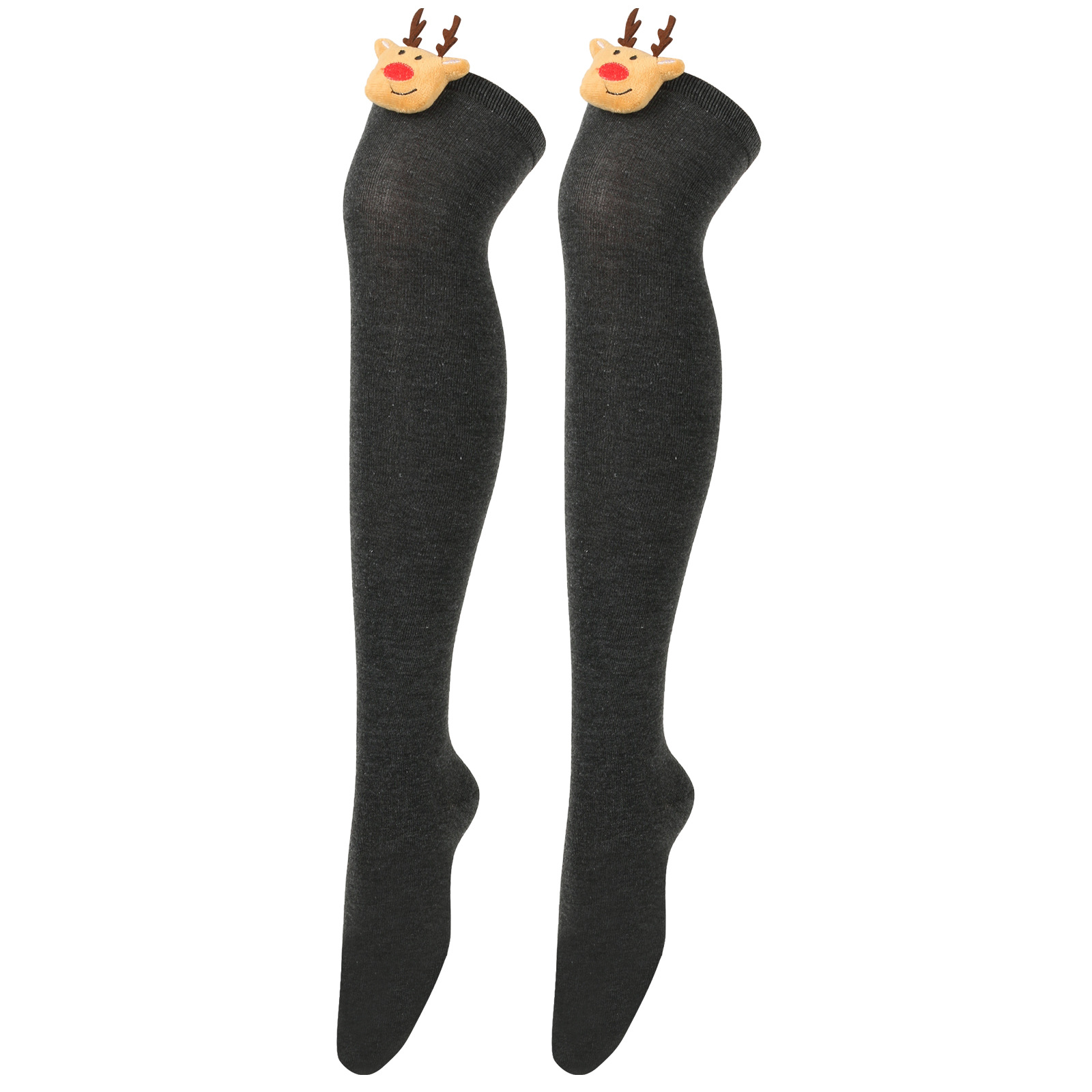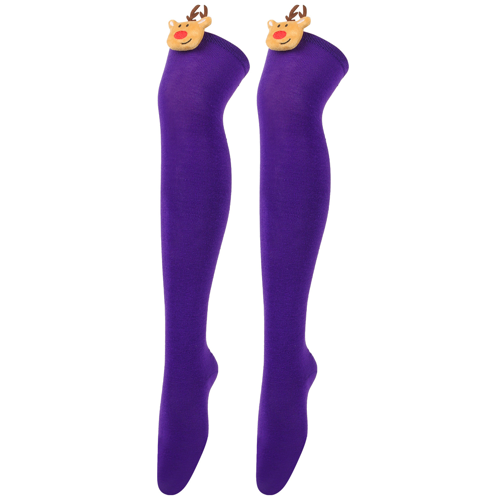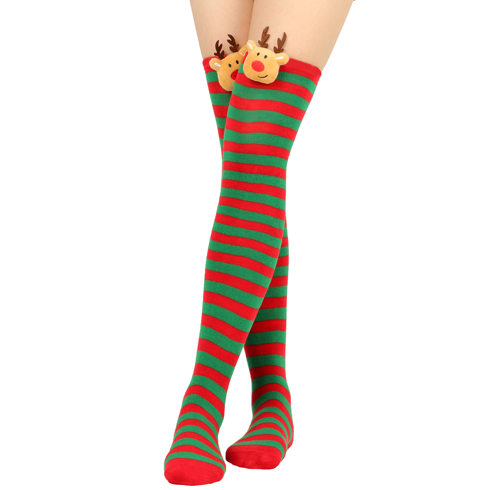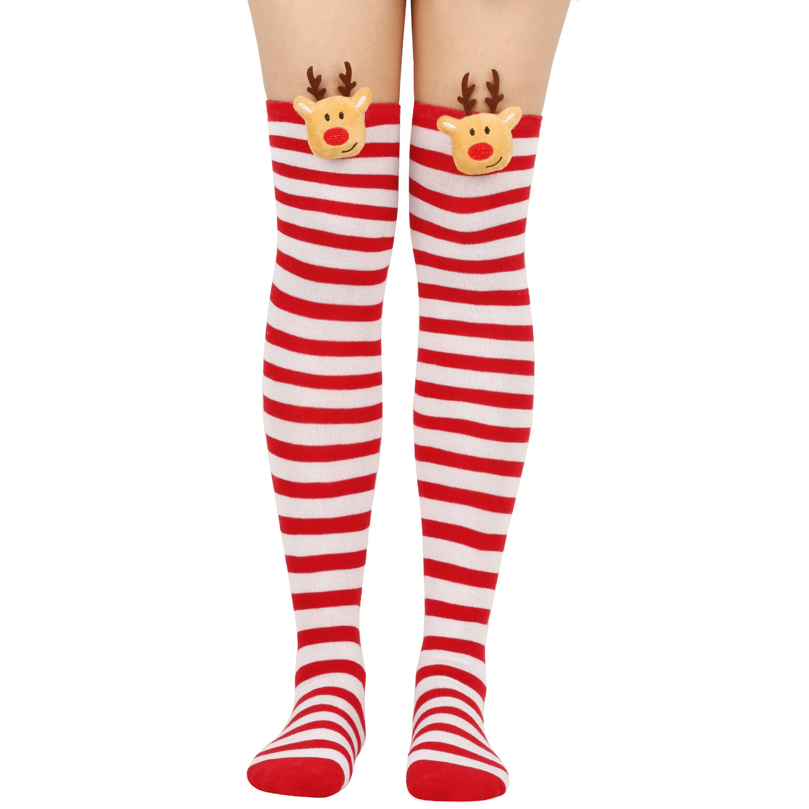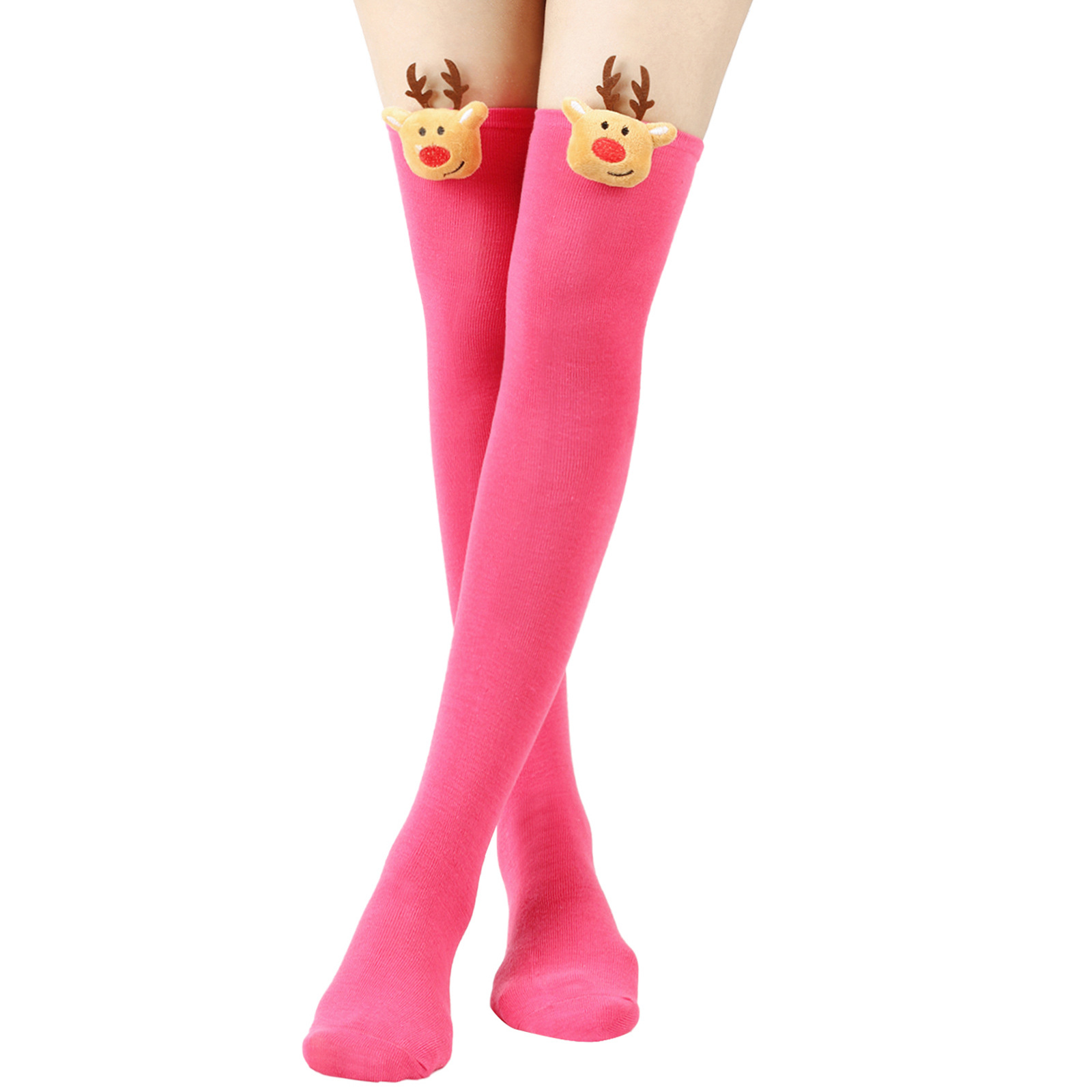 Calcetines de rodilla de reno de Navidad de las mujeres con tela de mezcla de poliéster 70% -80% para fiestas festivas