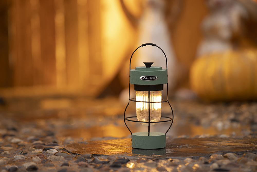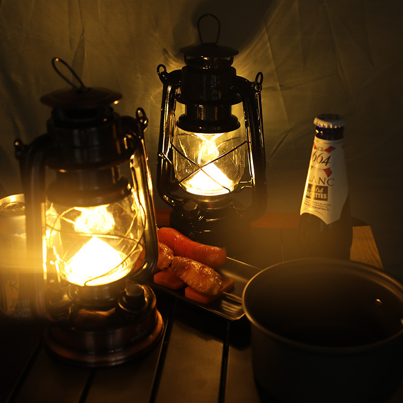 Linterna de campamento retro al aire libre con fuente LED, 3.7V, 5W, interruptor rotativo, 60 lm
