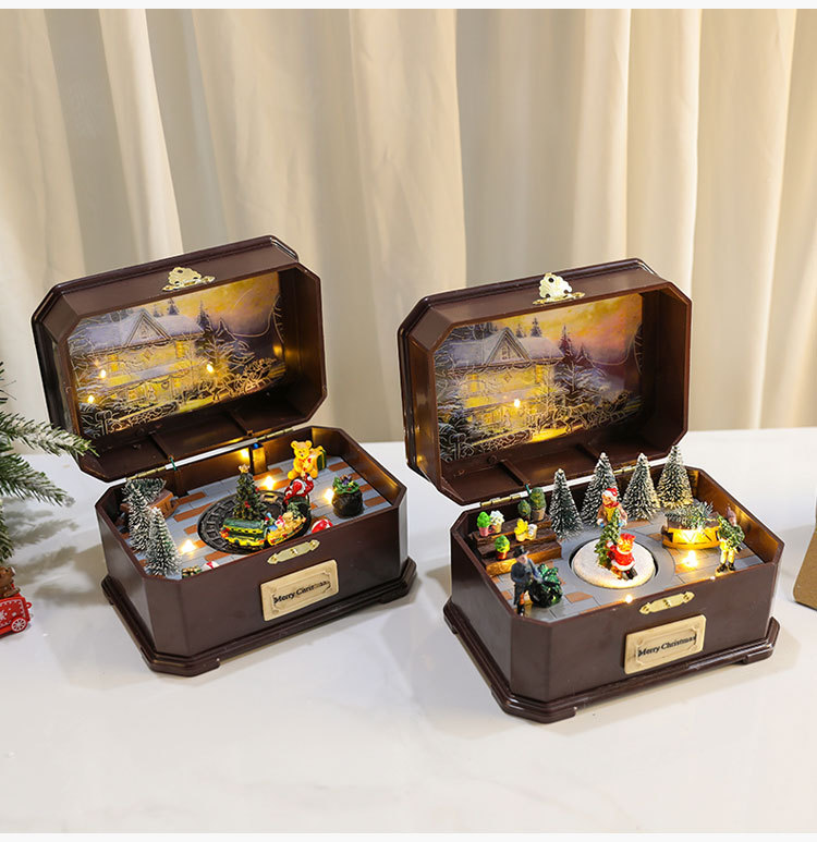 Caja de música de Navidad de PVC con luces giratorias y música, batería USB alimentada, regalo perfecto para niños